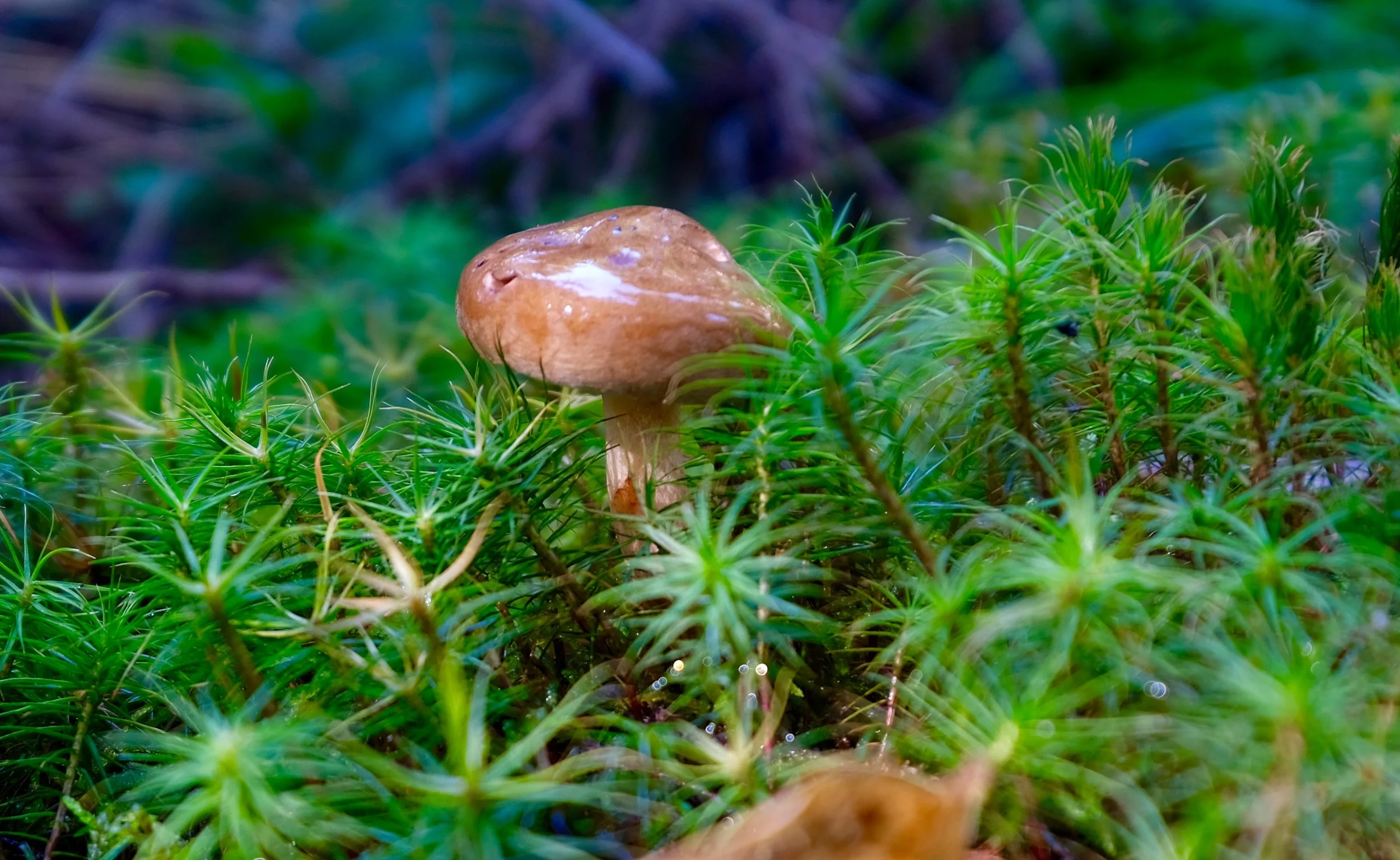 The vistas and mountains are awe inspiring but there are really neat things to see in the details. I have no idea what kind of mushroom this is or if it would be good on pizza, but it looked like a glaze was applied to it and it simply shown on the trail among the greens.
