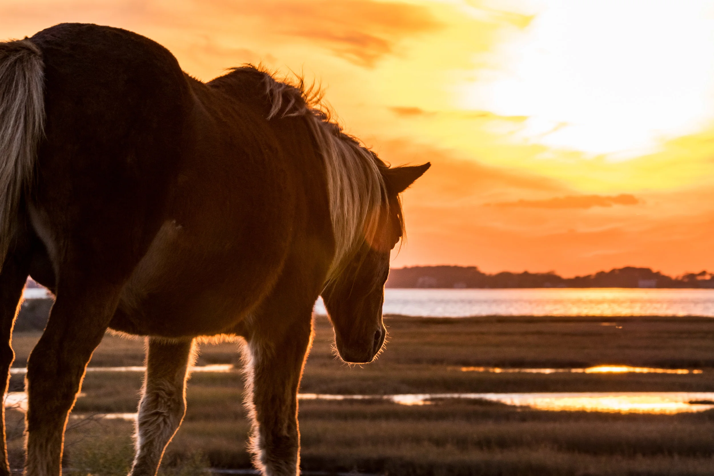 This mare is from the Maryland herd. The image was made at sunset in the sand almost at the north end of the island. Thanks to ranger Benjamin at the National Park visitor center for the head's up on her habits.