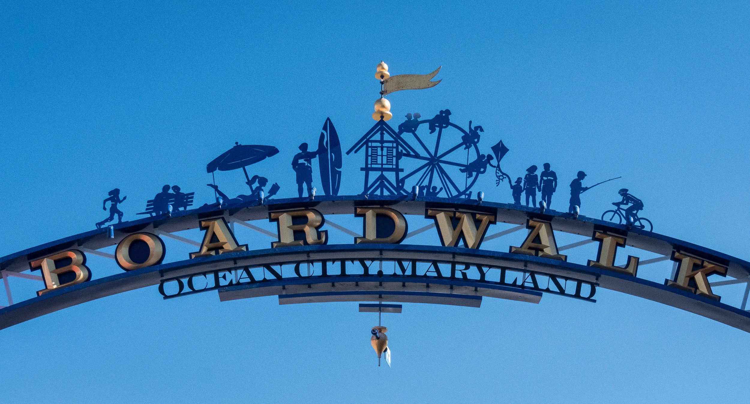 Sign at Ocean City Maryland leading to... ."the Boardwalk (boardwalk)". For those of you who will hear that reverberating in your head most of the day, my apologies.