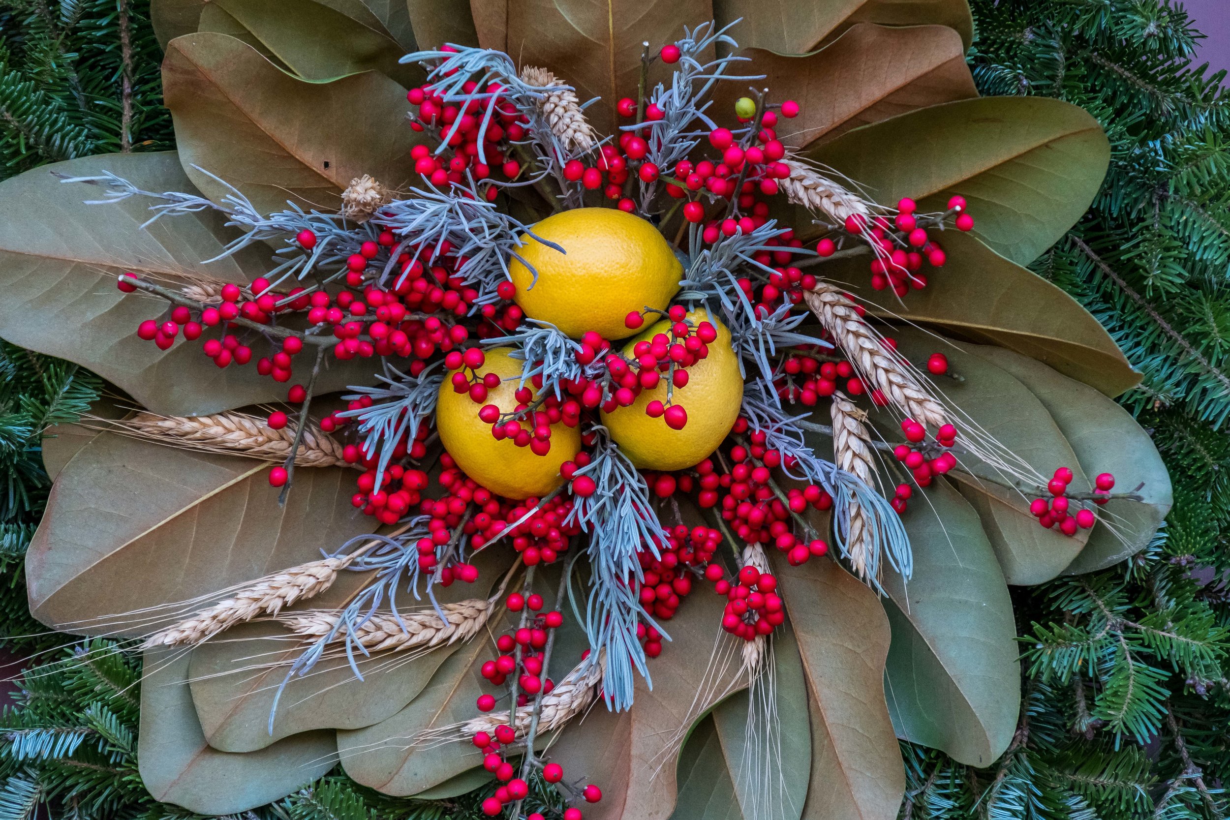 One of the many door decorations in Colonial Williamsburg. All natural defines the category.