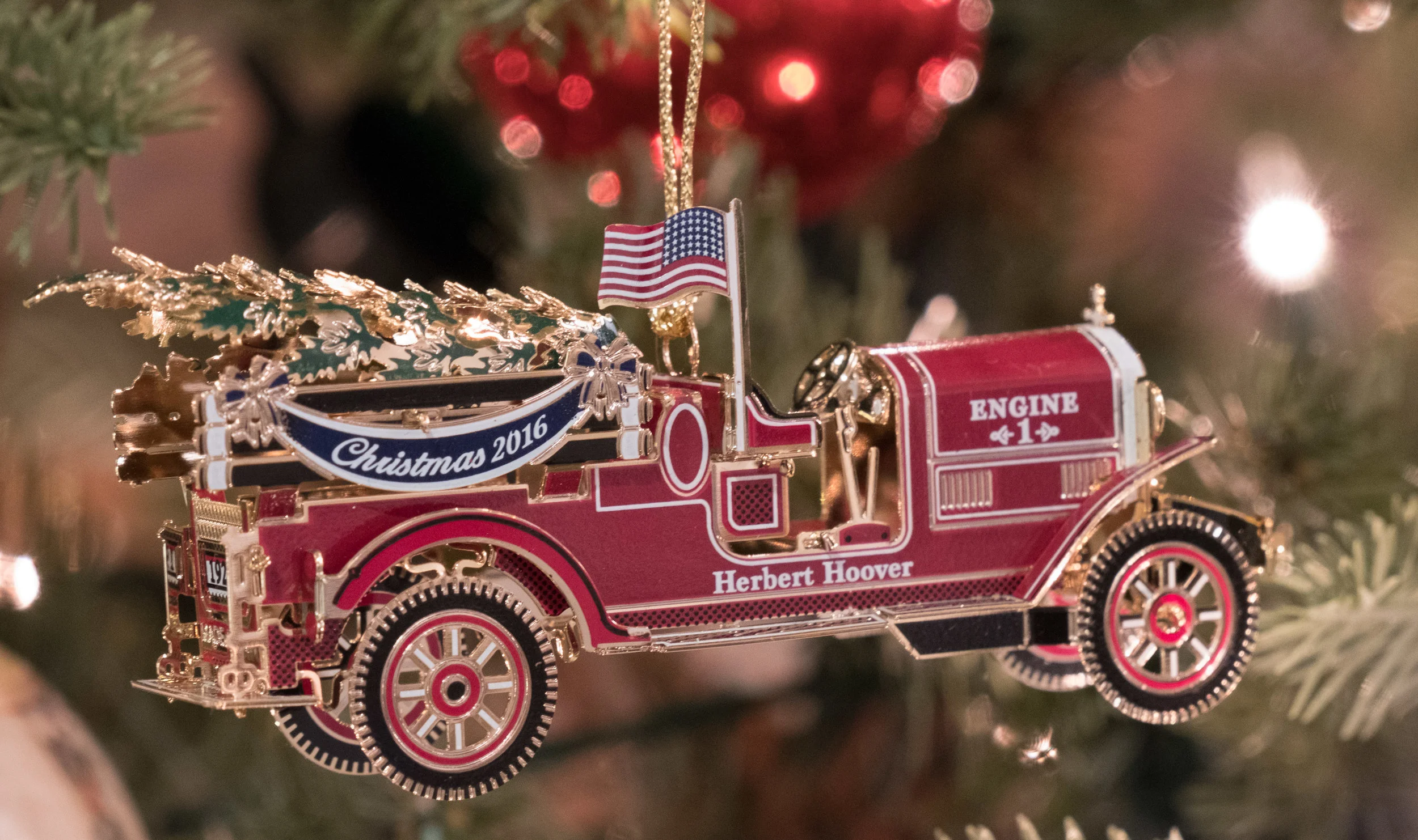 This is our newest Christmas tree ornament. (More about gift ornaments later.) It was given to us by a dear friend who is a history buff. It is one of a series by the White House Historical Association. Here is why it is a fire truck. "The ornament honors 31st U.S. President Herbert Hoover and is inspired by the fire engines that responded to the 1929 Christmas Eve fire at the White House and the toy trucks presented to children by the Hoovers the following Christmas." The next year President Hoover gave out toy fire trucks to the children. Thanks, Becky.