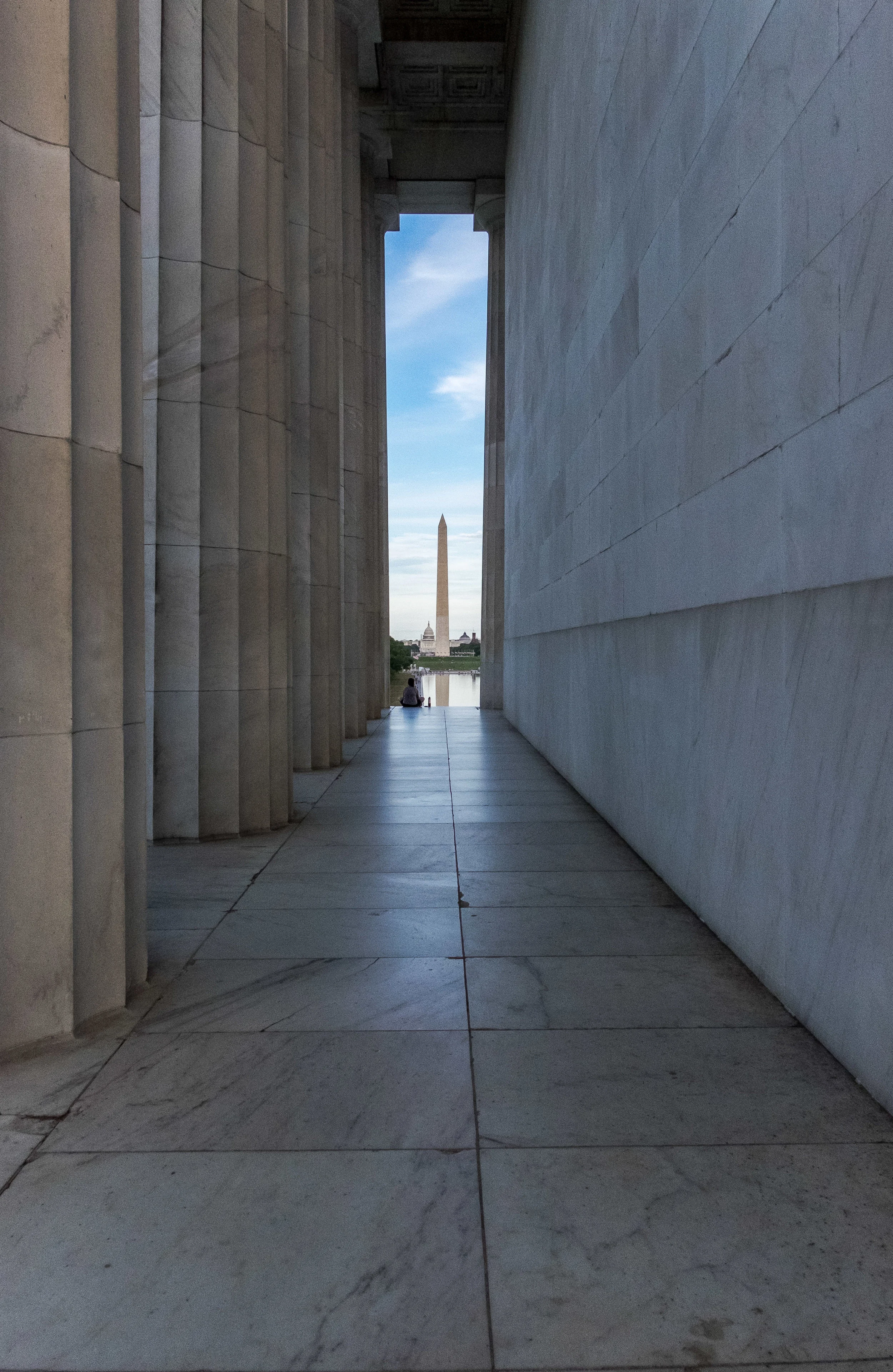 Not necessarily related but seen here from the side of the Lincoln Memorial are the Washington Monument and the dome of the Capitol.