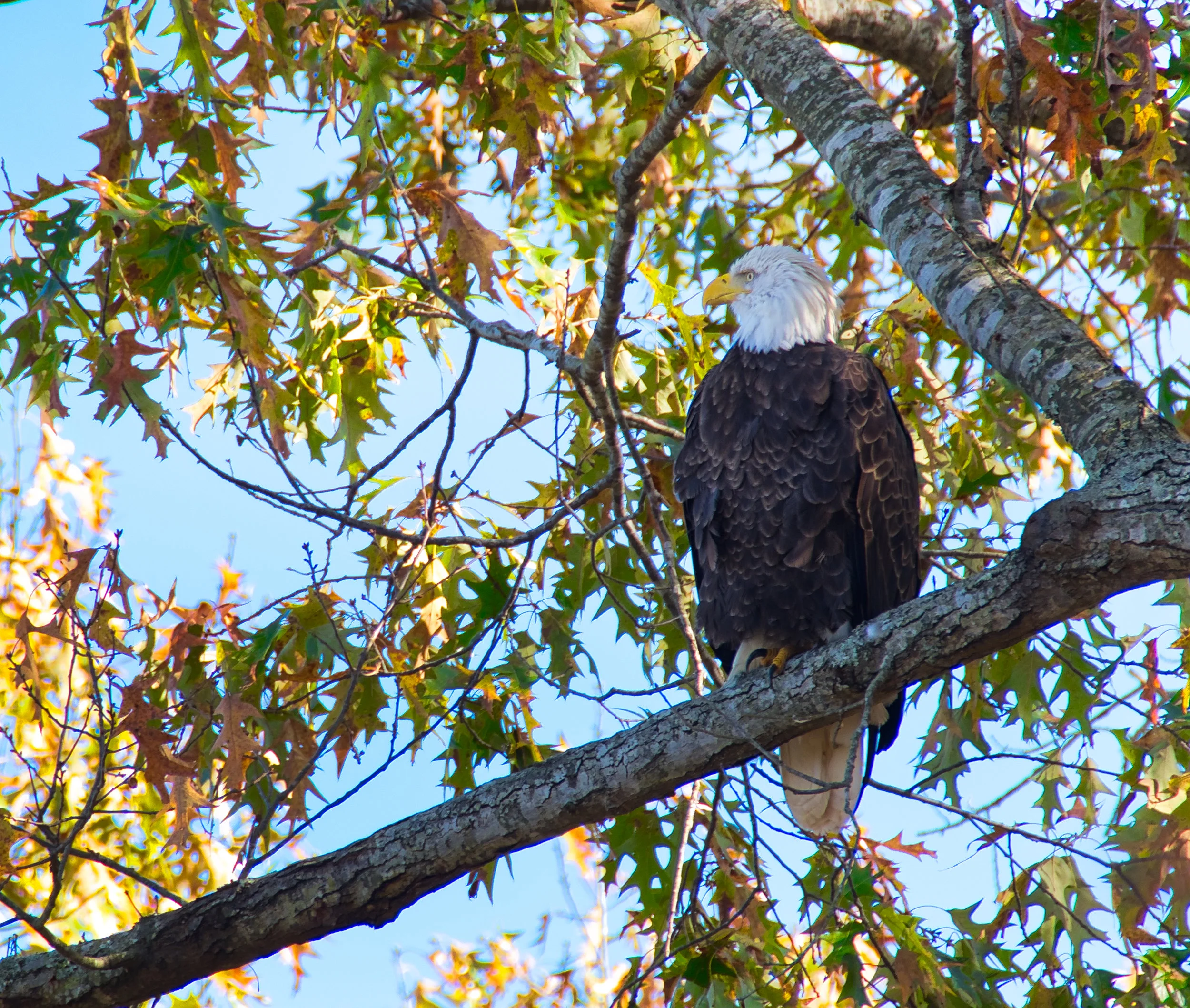 PS, Fuji XT-2 with 100-400 lens, 1.5 teleconverter 100 yards away and 70 feet up in the tree.