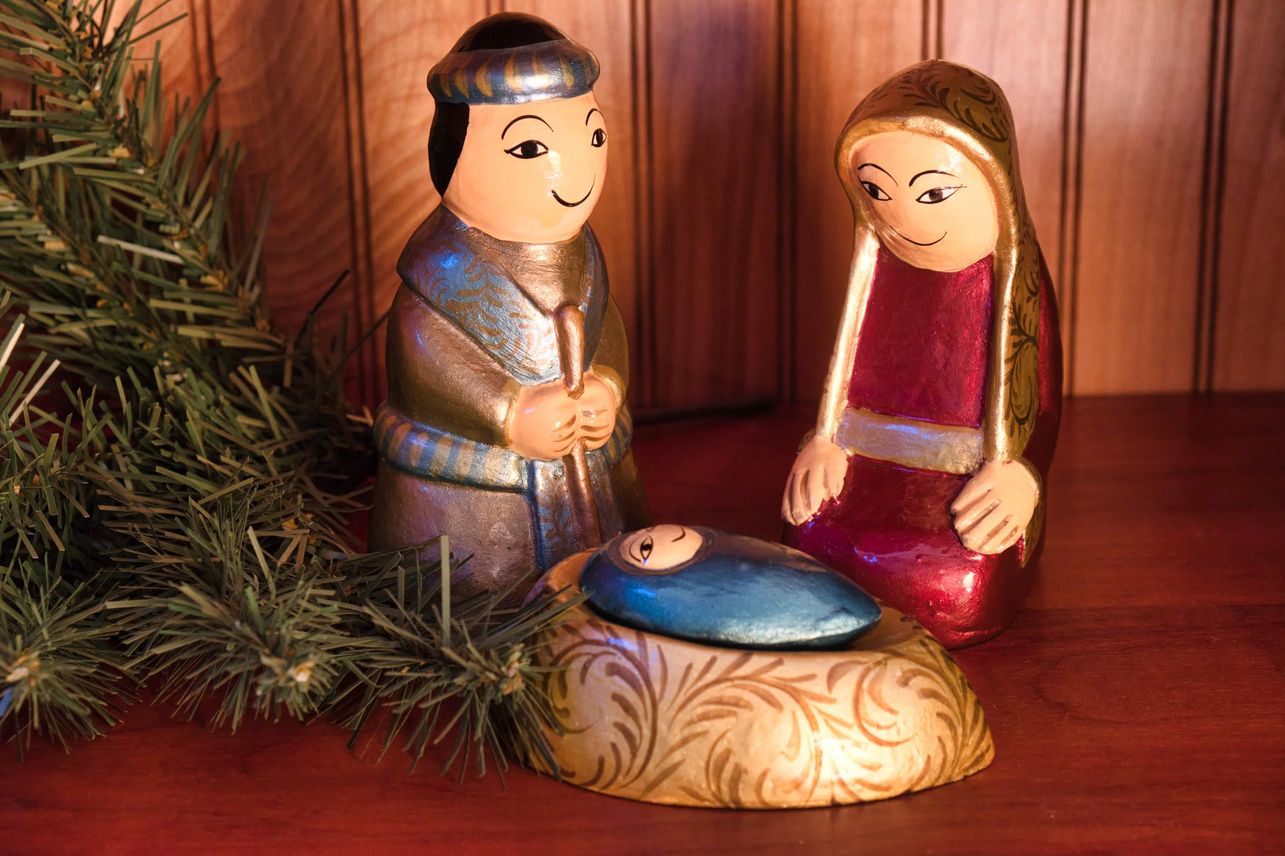 Not that Eve, Christmas Eve! One of our less traditional nativities - this one came to us from a place similar to 10,000 Villages. The actual country of origin is not on the figures, which are rather tall, about 8 or 9 inches high for Joesph. It was a gift we have enjoyed each year.