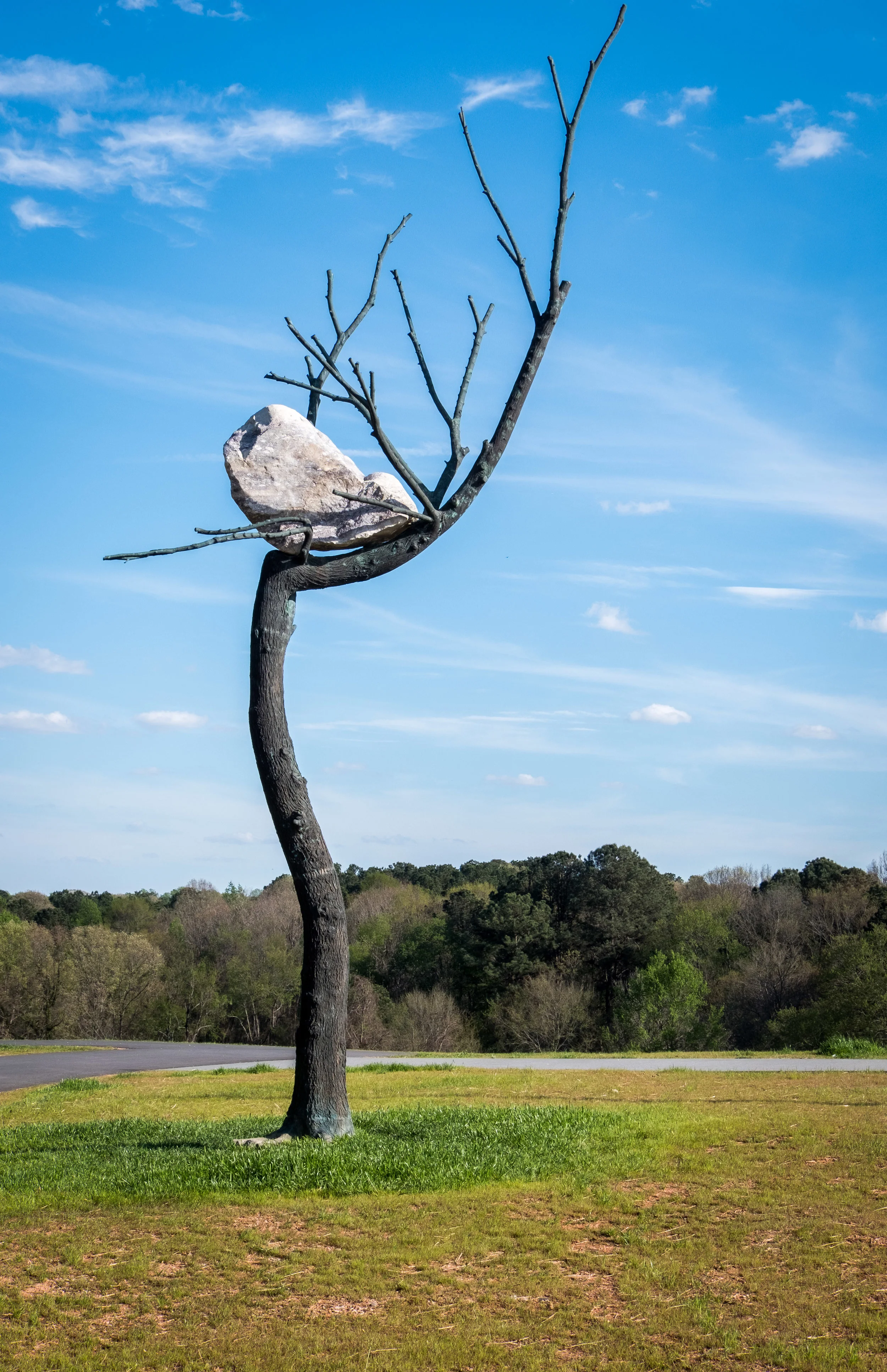 Bu don't worry it is not a real tree. This is found at the North Carolina Museum of Art. The property is really nice with several trails including paved, gravel and woodland. And there are actual hills. Scattered around the property and with more arriving are art works. I don't "get" them all but they add interest to the walk. This one is close to the parking area.