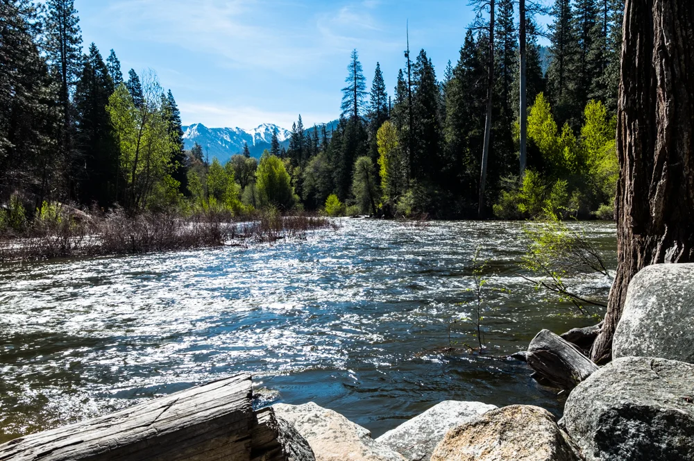 A mostly remote National Park the canyon drive is one of the few places to easy see some of this amazing land. King's Canyon NP is between Sequoia and Yosemite. This is a short walk down a steep hill to the river near Knapp's Cabin. The river is waaaay over normal. In fact people were warned not too even try to wade in any portion. Stellar country.