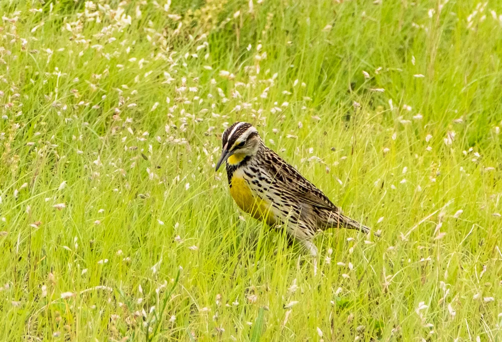 This is one of the many Western Meadowlarks we heard and saw at the Tall Grass Prairie National Preserve in Kansas. Hearing one is nice, hearing dozens is a joyous symphony.