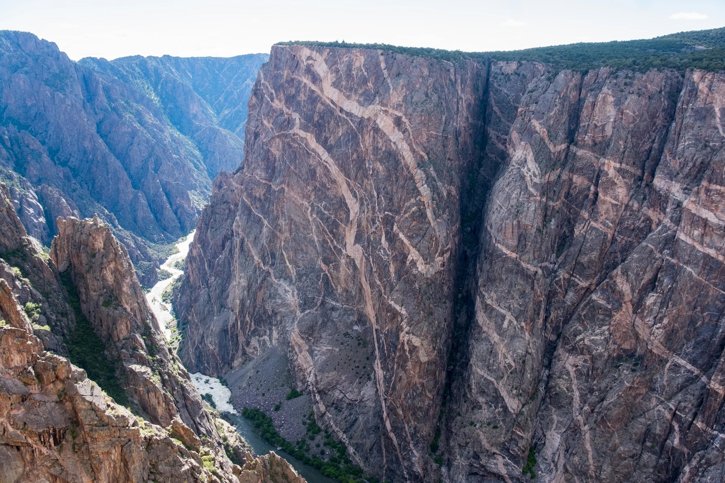 According to the sign at the site, this is the highest shear wall of rock in the US. If the Empire State building began at the bottom it would not reach half-way up the cliff. This is at the Black Canyon of the Gunison in Colorado.