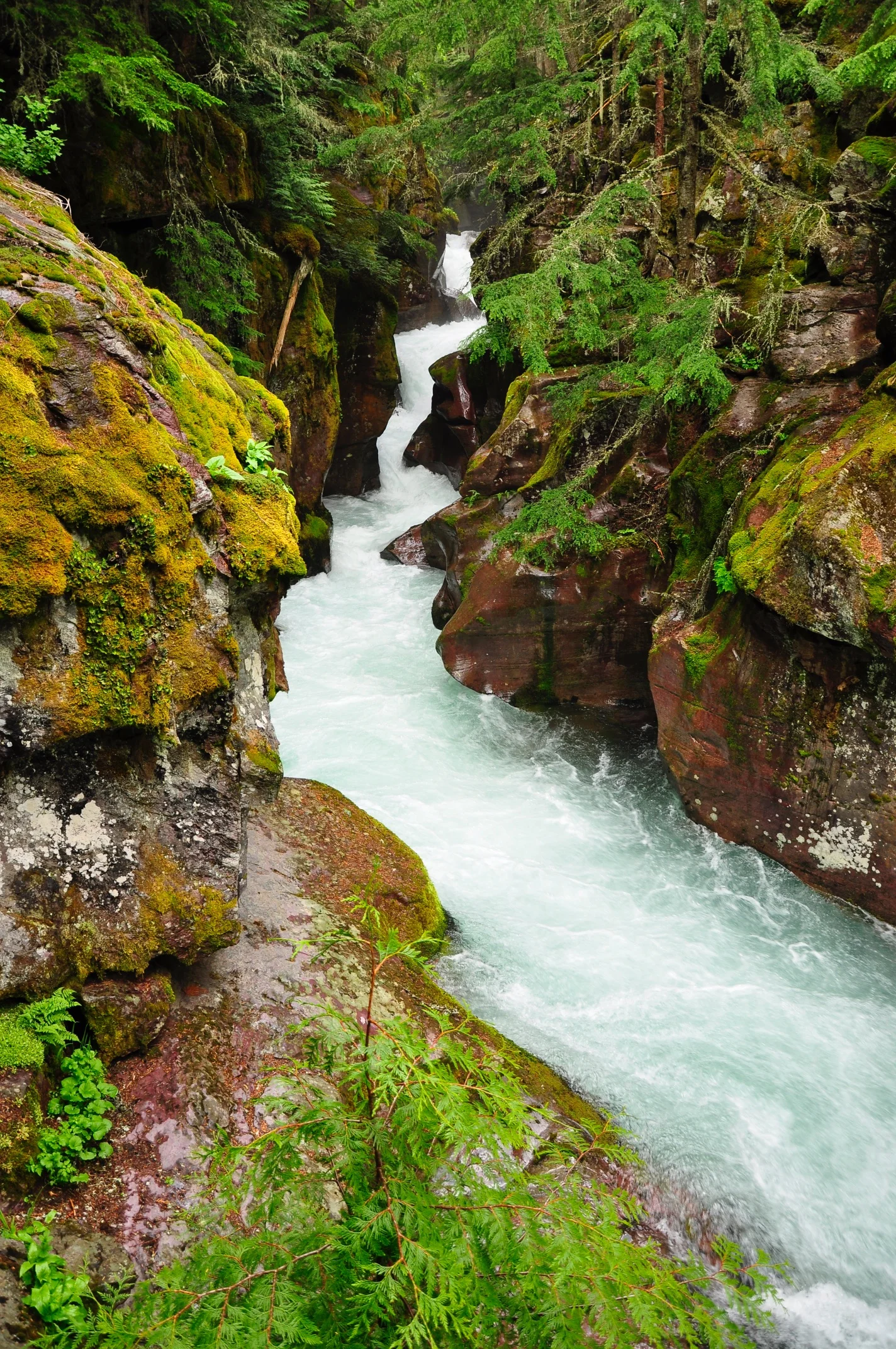 This stream is glacier run off so the water is both an interesting color and very cold. This is in Glacier National Park. A rocky wonderland.