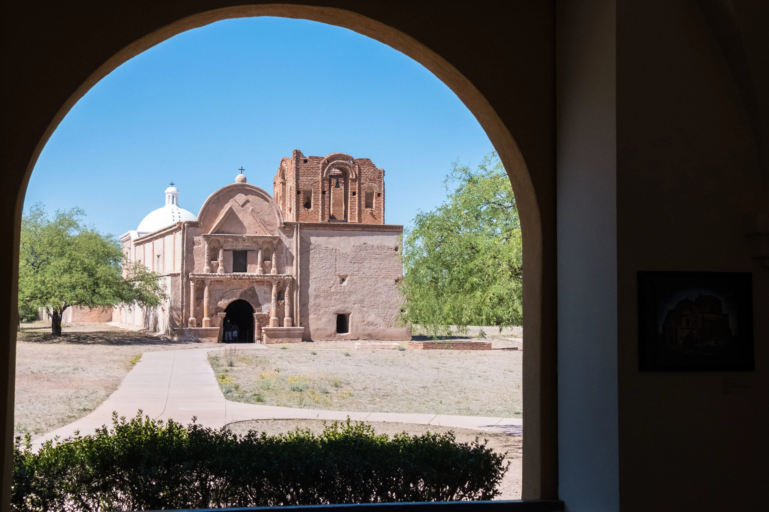 This is the Tumacacori Mission in southern Arizona, just a few minutes north of the boarder with Mexico. "Mission San Cayetano del Tumacácori was established by Jesuits in 1691 in a location near a Sobaipuri settlement on the east side of the Santa Cruz River. Services were held in a small adobe structure built by the inhabitants of the village. The mission was abandoned for a time. In 1752, the village was reestablished and in 1753 the church of the Mission San José de Tumacácori began construction at the present site on the west side of the Santa Cruz River. This first church structure was erected for use by the mission in 1757.