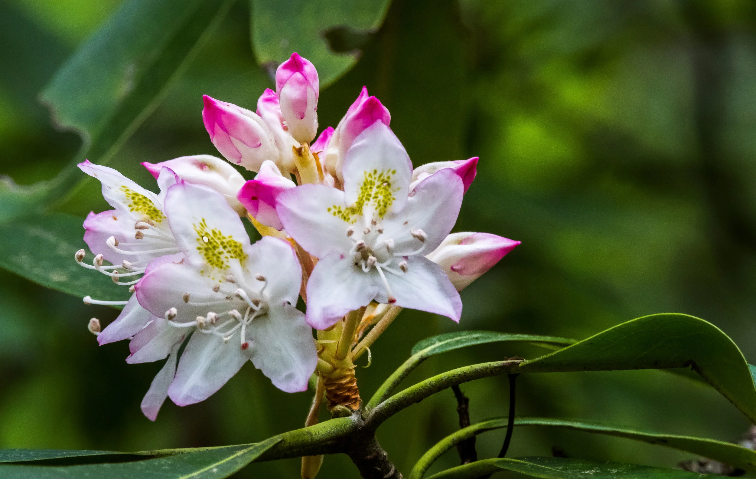 if this is a rhododendron or a mountain laurel or if they are two names for the same plant. But I love these blooms along the paths and roads in the Blue Ridge and the Smokies.