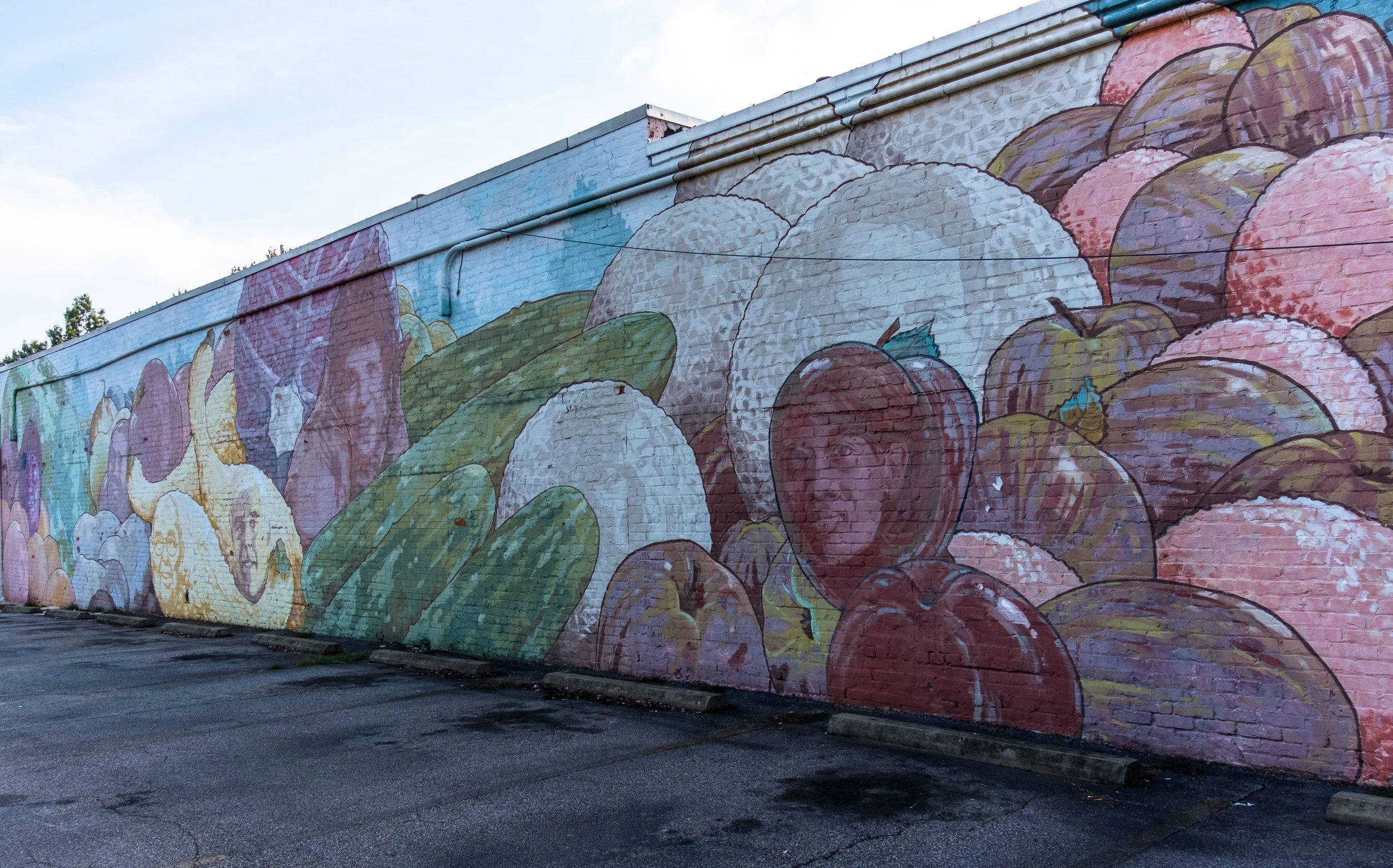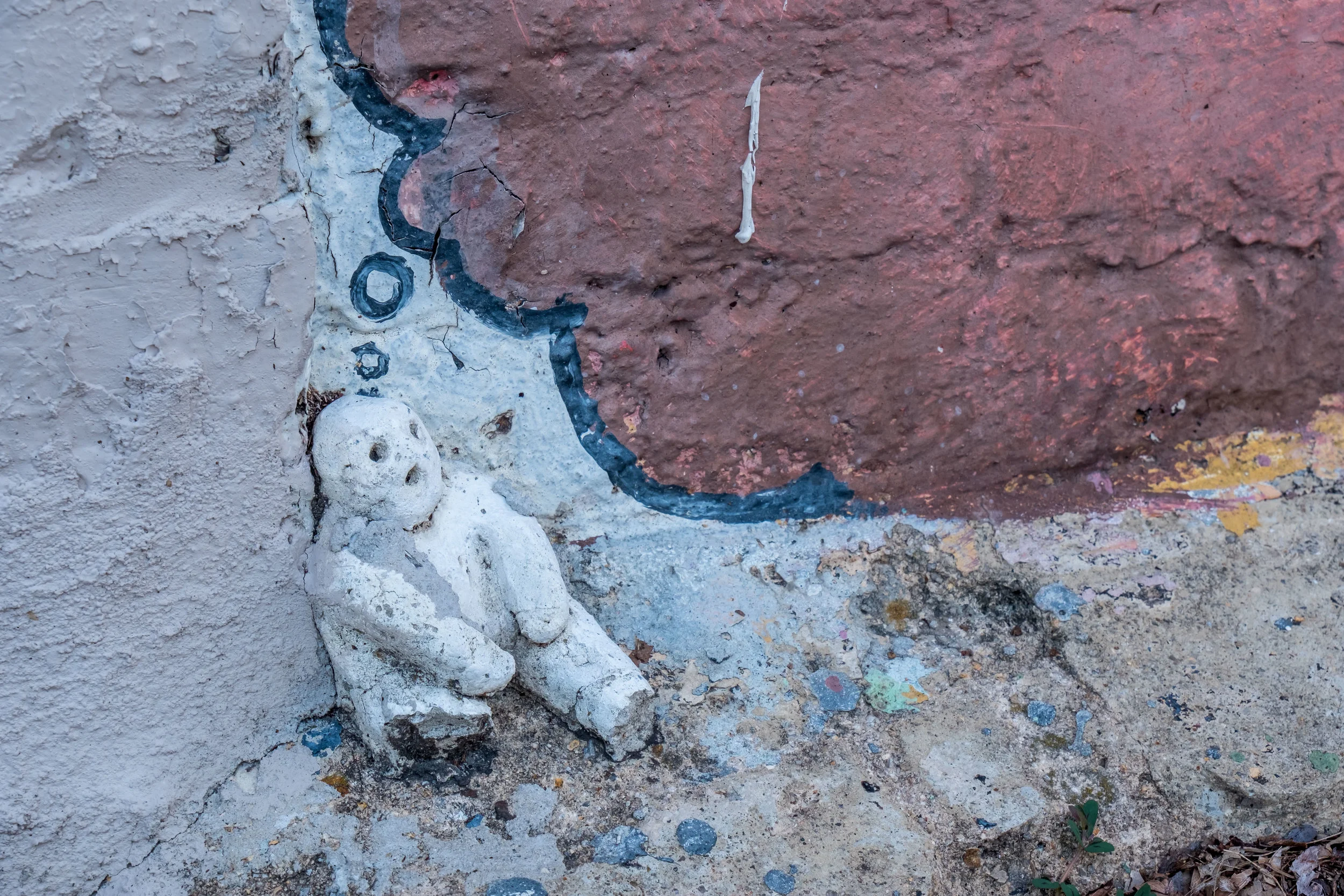 So, there is a large mural on a wall by the downtown farmers market. I had driven by it before but stopped on a Sunday night to take a photo. Then, my grandson discovered this little sculpture - about 8 inches high, that apparently is the "source" of the mural as his little thought bubbles go on and on.