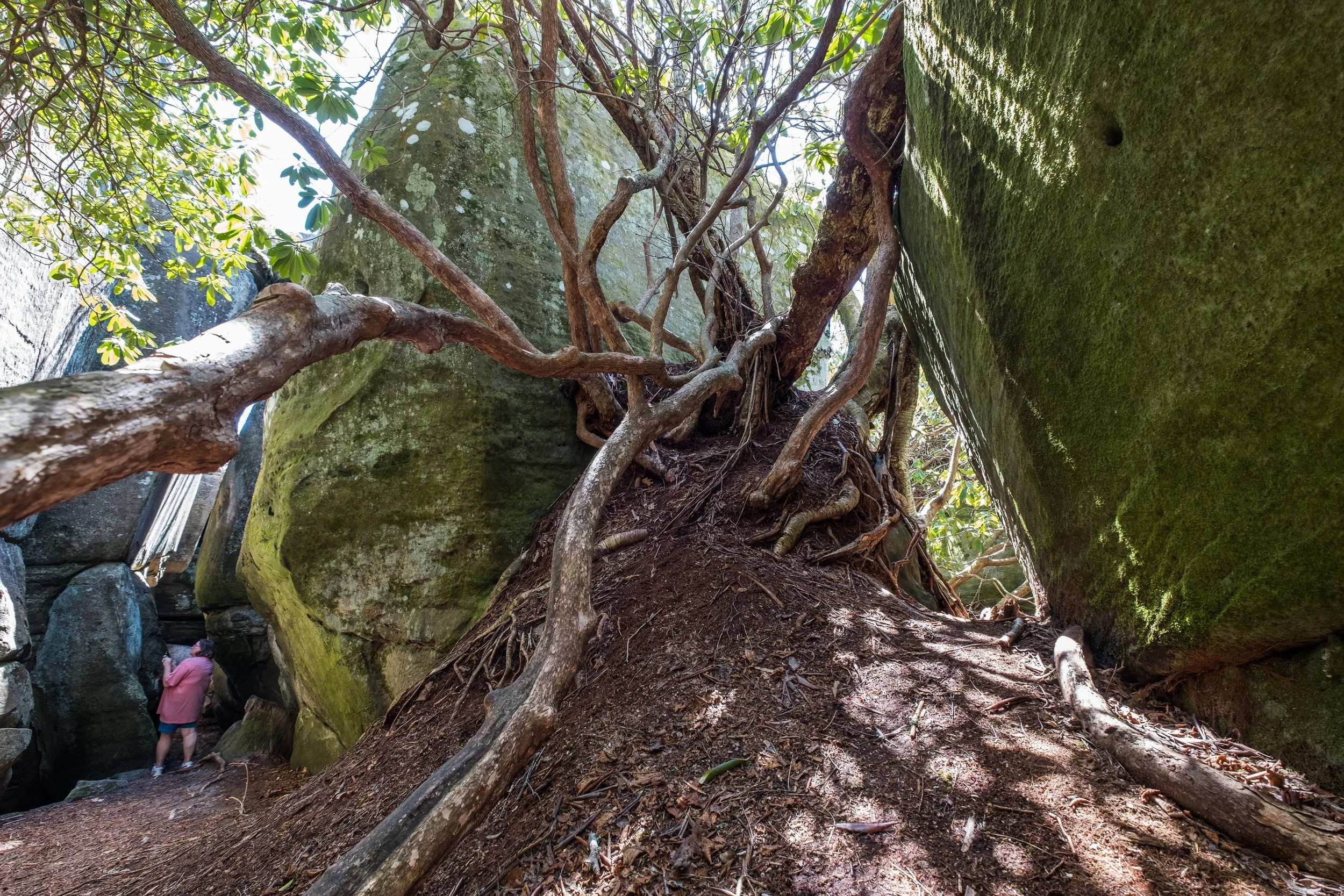 It is hard to convey the scope of the Channels and the depth of the mini canyons you wander through. So, here are two photos that include some people. The second is of a lady as you enter the first bit of the Channels. So we are about a third of the way down. The first photo is deeper into one of the crevices and if you look carefully, really carefully you can see a man in the middle bottom of the photo. It was also 20 degrees cooler in this maze than one top.