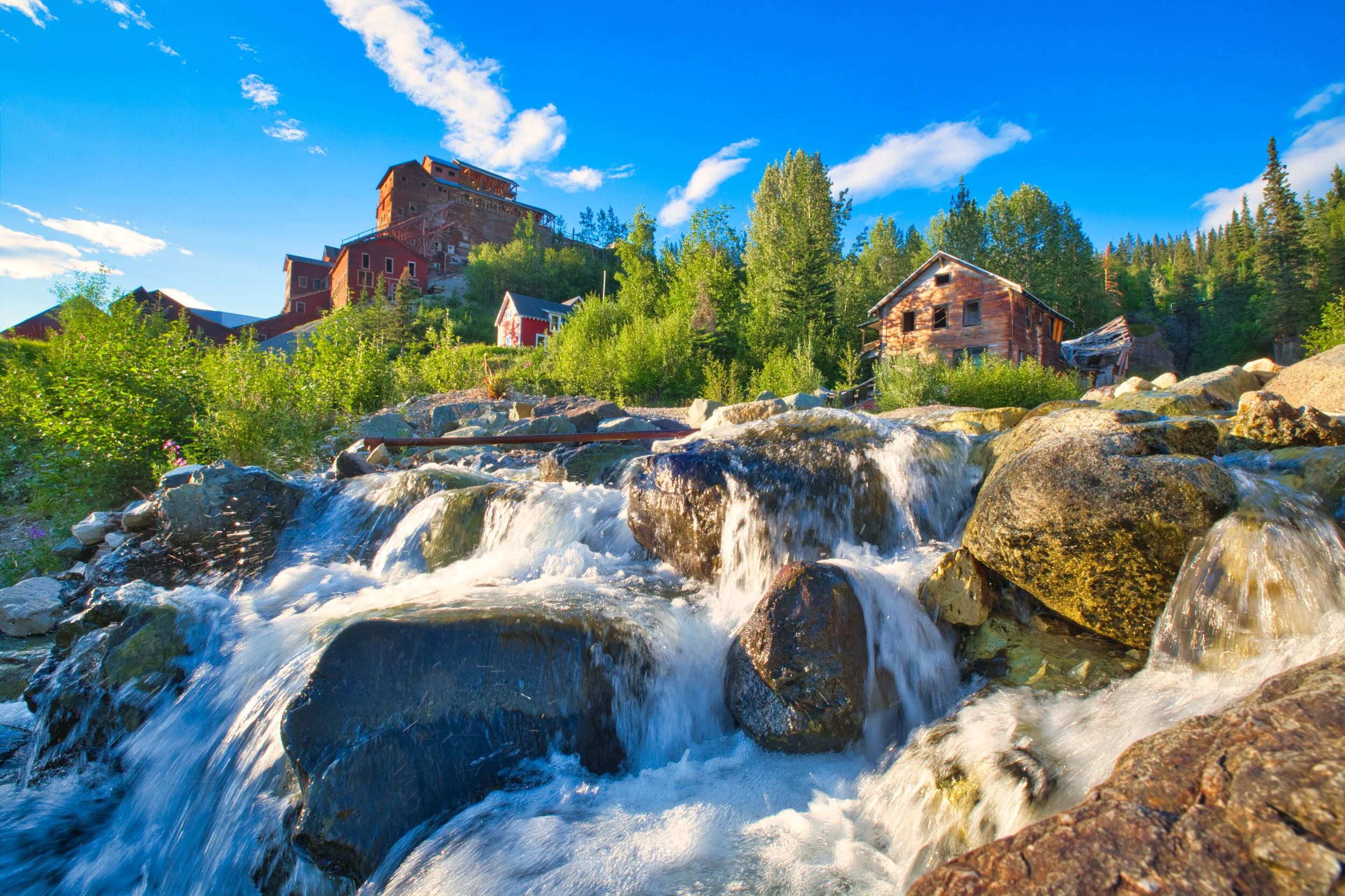 This is the Kennecott mine in Wrangell St Elias NP from below the spillway. The gutted building in the center was the hospital.