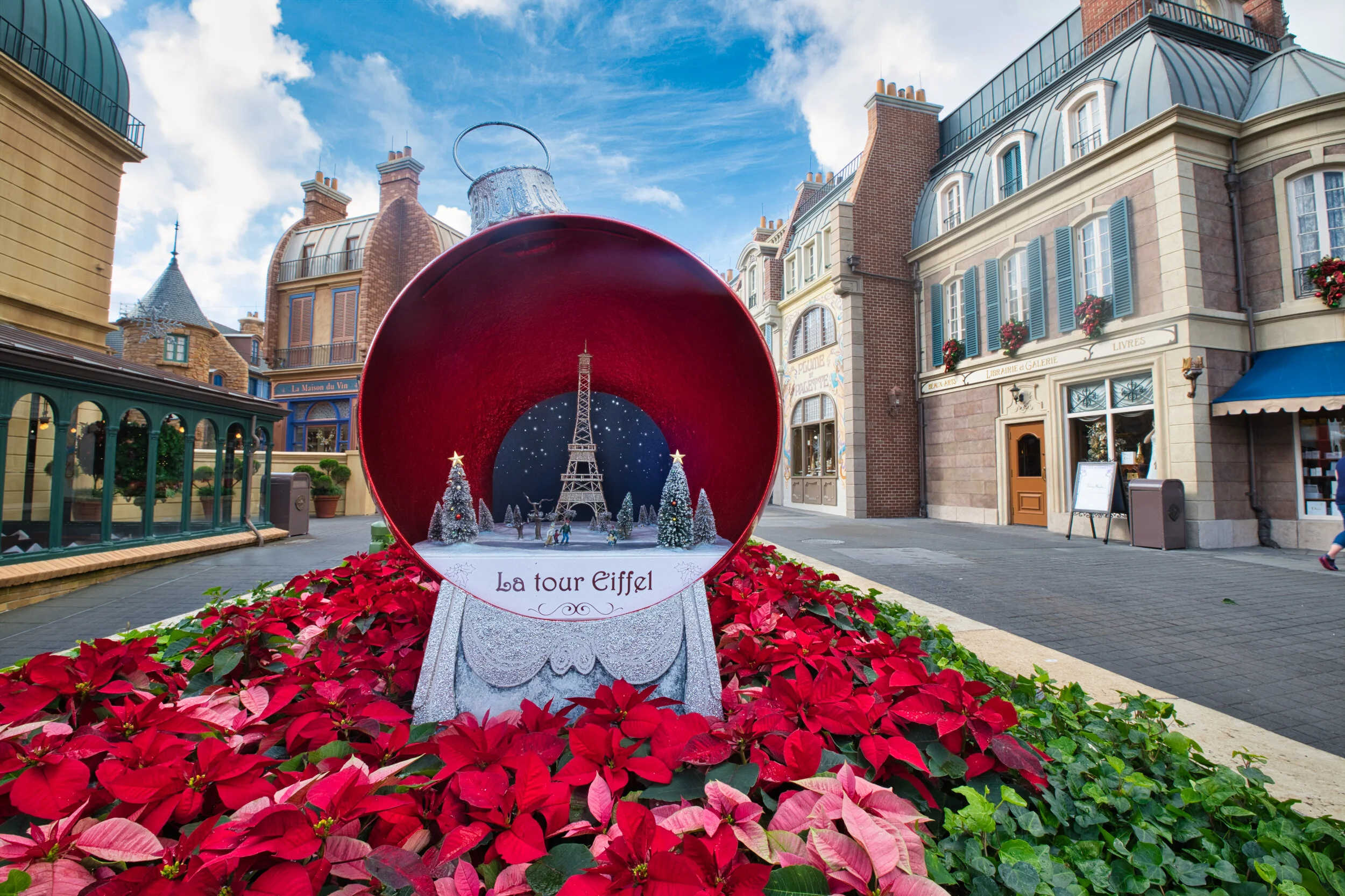 The very best pastries in WDW are in France. Great chocolate bread, eclairs and croissants among many other choices however, I would not know cause I keep getting these. Others among us try different things. The area was ready for Christmas with this cute hollow ornament that invites you to “Tour” (if they are not on strike).