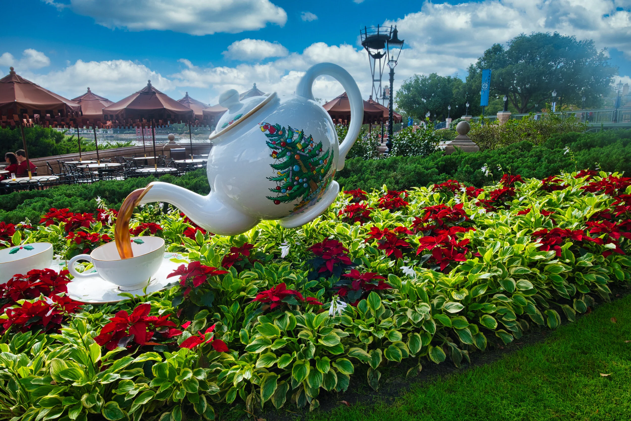 I liked this tea pot and cup display found in Epcot at England across from Twinings, of course. We have cups that resemble these.
