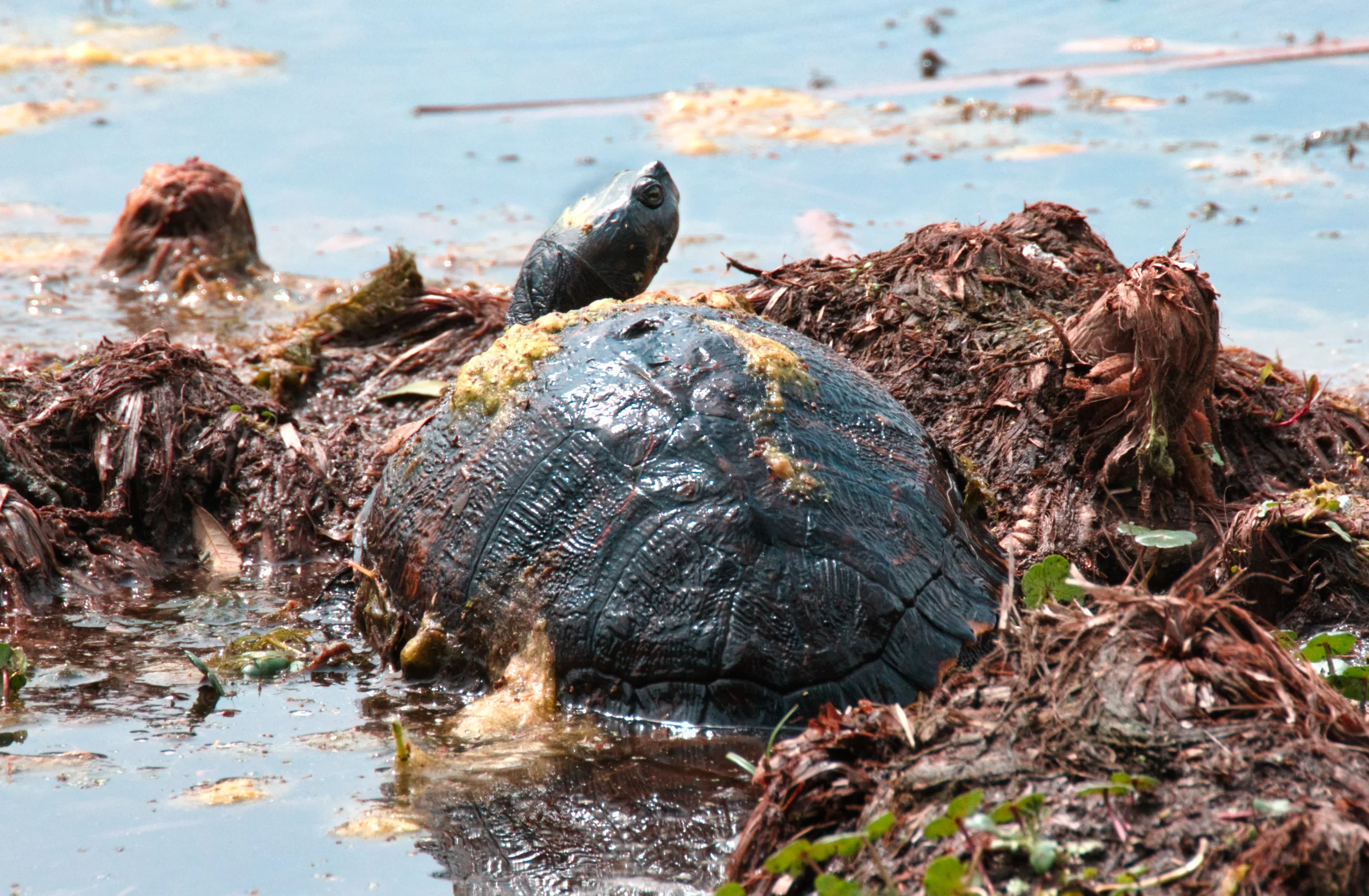 This is one very big turtle. What kind? Who cares I’m not going near it - nor was anything else, he was serene and respected. I think he was the grand turtle of this pond.