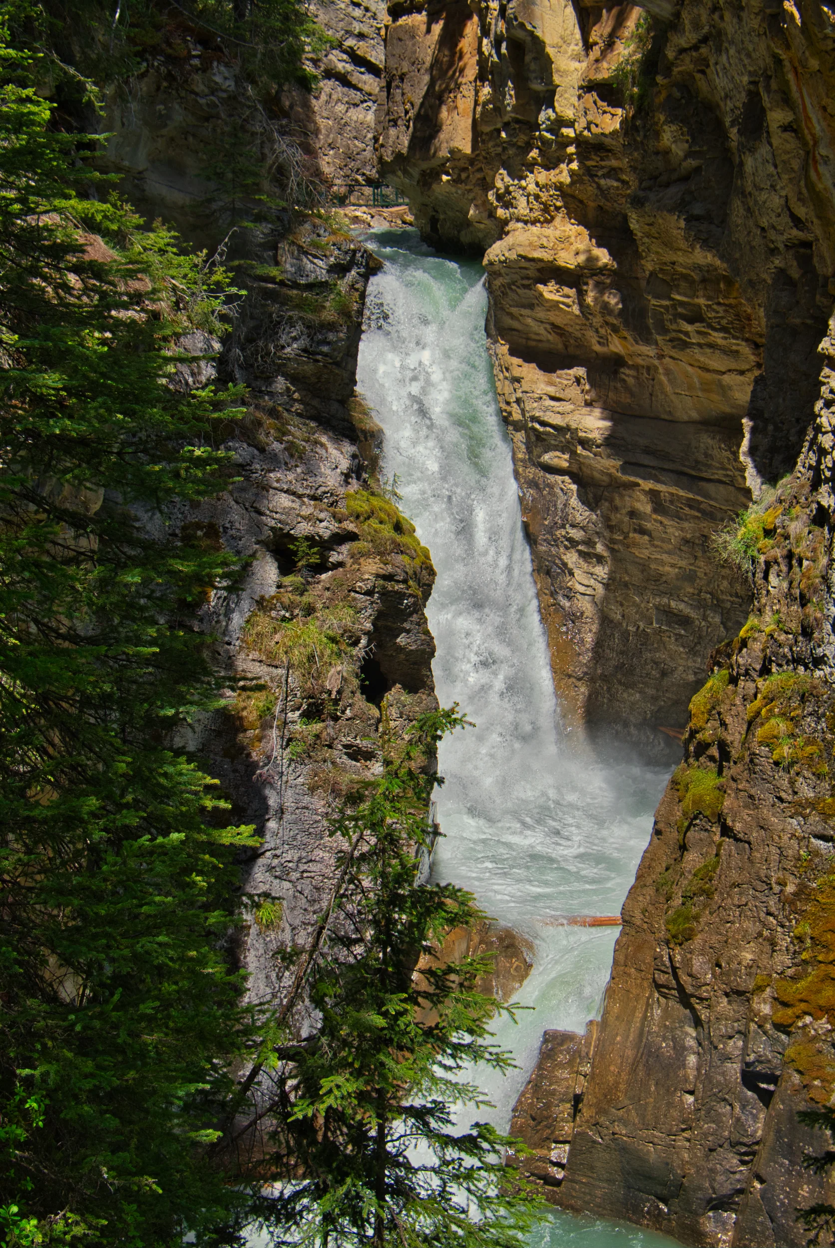 Up early to get to a hike at Moraine Lake. But we were interrupted on our effort to get their early enough for a parking space by a grizzly bear, our first on this trip and second ever. Thus we were a bit late but got one of the last parking places at 8:00. What a magnificent lake, incredible colors of turquoise and blue and green. All surrounded by snow and glacier capped mountains, seven peaks in all, I think. The trail goes only on one side of the lake so it is an out and back. Great scenery and great weather. Then we tried to do another hike but zero parking. None. So we went to Lake Louise, the town, and ate at Bill Peydo’s Cafe. Nice place with decent food not too badly priced. Then back toward Banff on 1A we stopped at Johnston Canyon for a walk to two water falls along a 2.5 mile trail. Again rushing, turquoise glacial waters filled the canyon. We saw both the lower and upper falls.