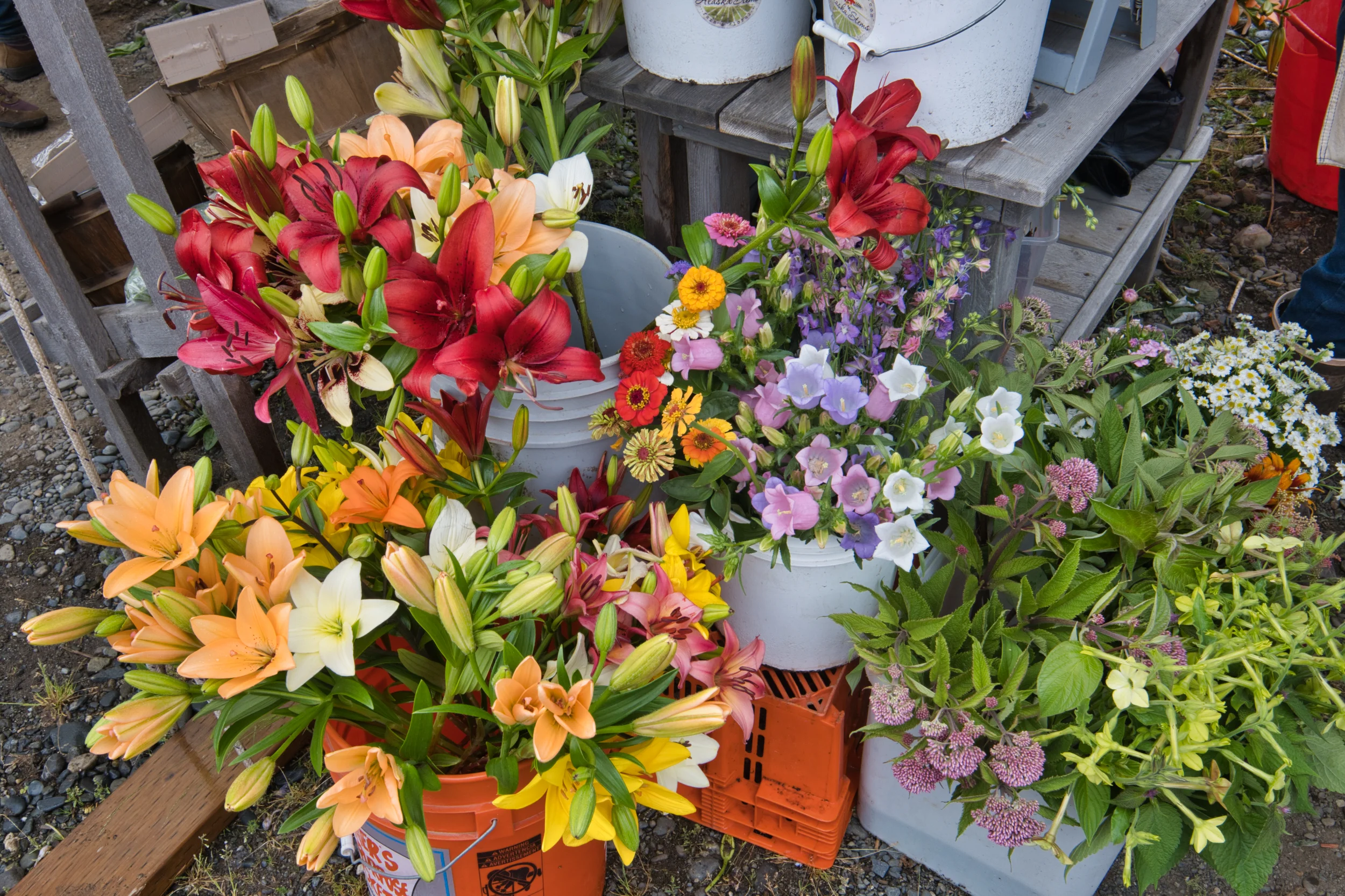After a morning at the bakery and craft filled farmers market in Homer, we moved north to attend church in Kenai and to explore the National Wildlife Refuge that occupies most of the north end of the Kenai. The NWR-VC is nice but very hard to find. We finally parked there as the rain started and got quite wet on a short walk. Then off to the water front campground recommended by the volunteer at the VC. Disaster. First, it was overflowing with anglers. Second, it was on soft sand. Before I knew the situation, we were in axle deep. I had to unhook the trailer while a very helpful fisherman named Juan brought in his heavy truck and we put my tow hitch into his truck. I drove down the road a bit and he followed a few minutes later. We re-hooked and decided we needed solid ground. We are at the Wal-Mart tonight.