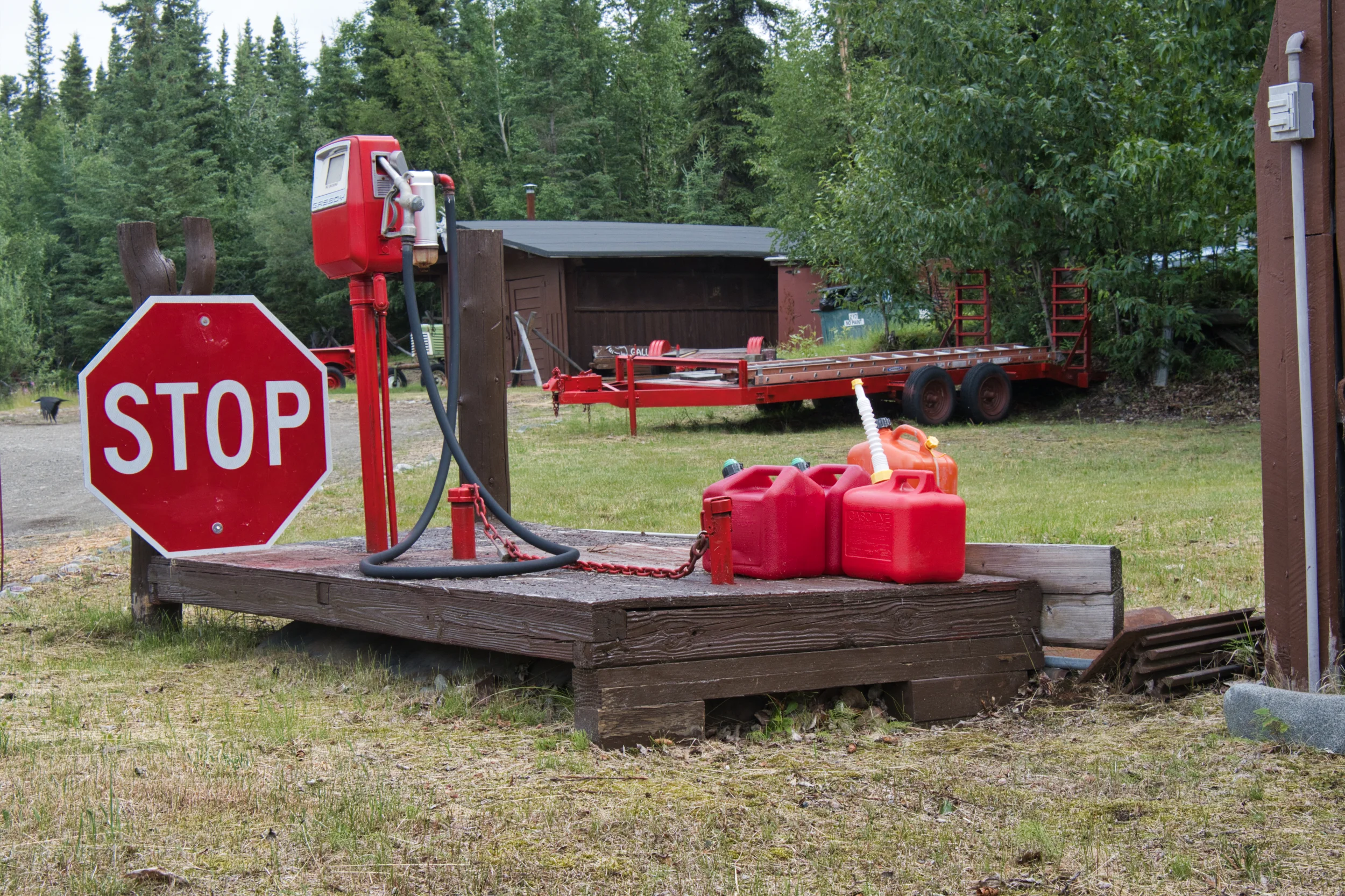 We were late for the moose viewing in the park due to work, REALLY, but we made the trip. No moose. Back at the campsite, we prepared to leave but took advantage of decent WiFi and post office and a few other details of life on the road. CJH and I walked the grounds of the Hart D Ranch owned by Mary Frances DeHart (wildlife artist, sculptor, RV and hotel proprietor, postmistress, hunting guide (one of the first female licensed in Alaska) entrepreneur, mechanic, champion dog breeder, fisherman, wildlife processor and much more. She has been here more than 60 years (electricity arrived in 2009) and, now on her own, takes care of this whole property. Quite a lady. We drove south on the Tok cut-off through endless frost heaves and 13 miles of dirt road (construction on-going) that would put a Disney adventure ride to shame. At one “dip ahead” sign the white SUV I was following 60 feet behind just disappeared. At Glennallen, we bought gas and a few groceries then stopped at the Wrangell-St. Elias NP Visitor Center 2 minutes before closing. Guess we will go back. We did do a one mile walk on a trail. It is hot here, 83 today, 86 yesterday, and smoke from distant fires obscures the mountains. We are in the Squirrel Creek Rec. Area for the night. Stream a few yards left of us and overlooking a lake 100 feet right of our site.