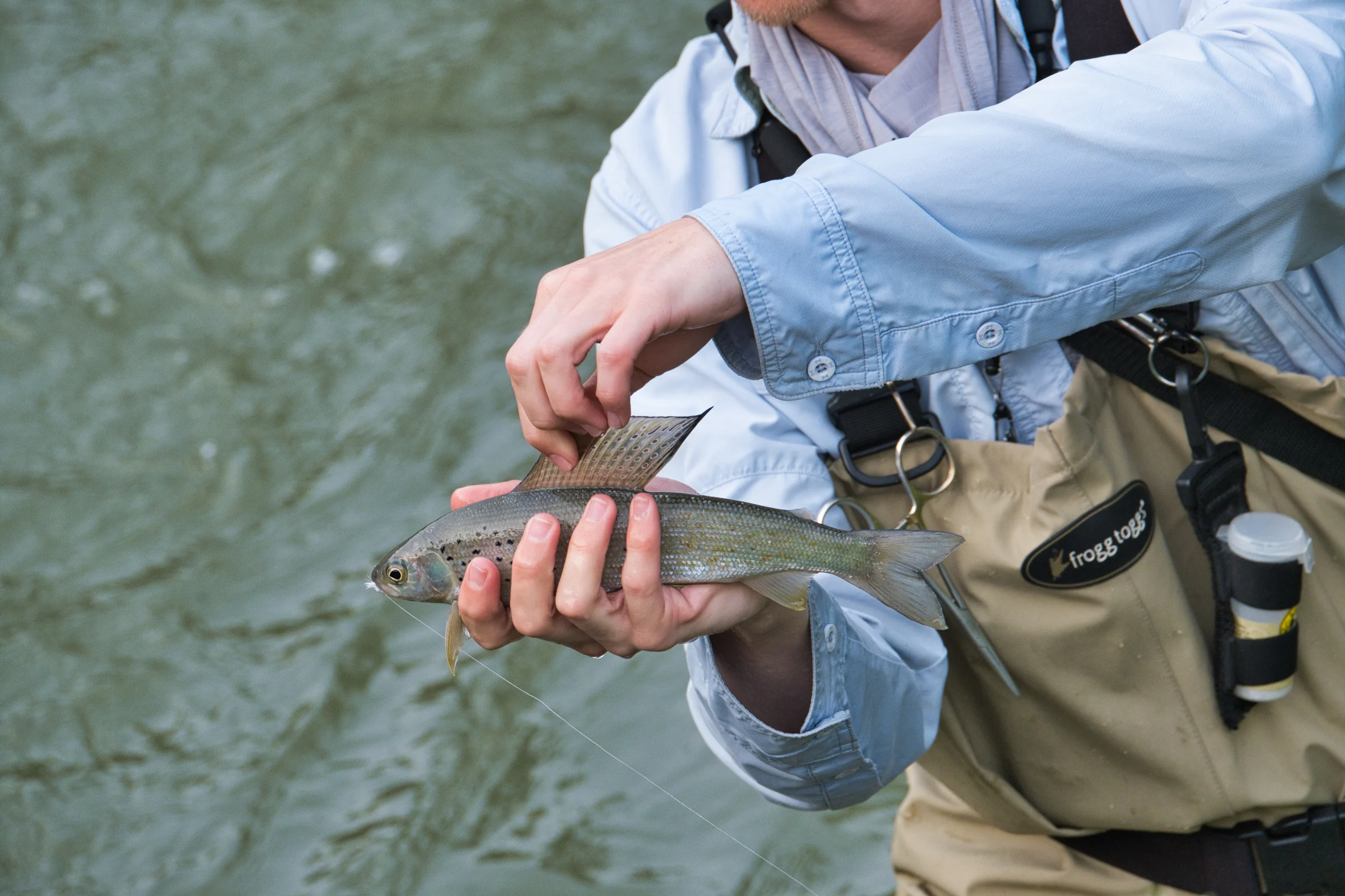 We watched this fly fisherman catching Grayling, with it’s large dorsal fin