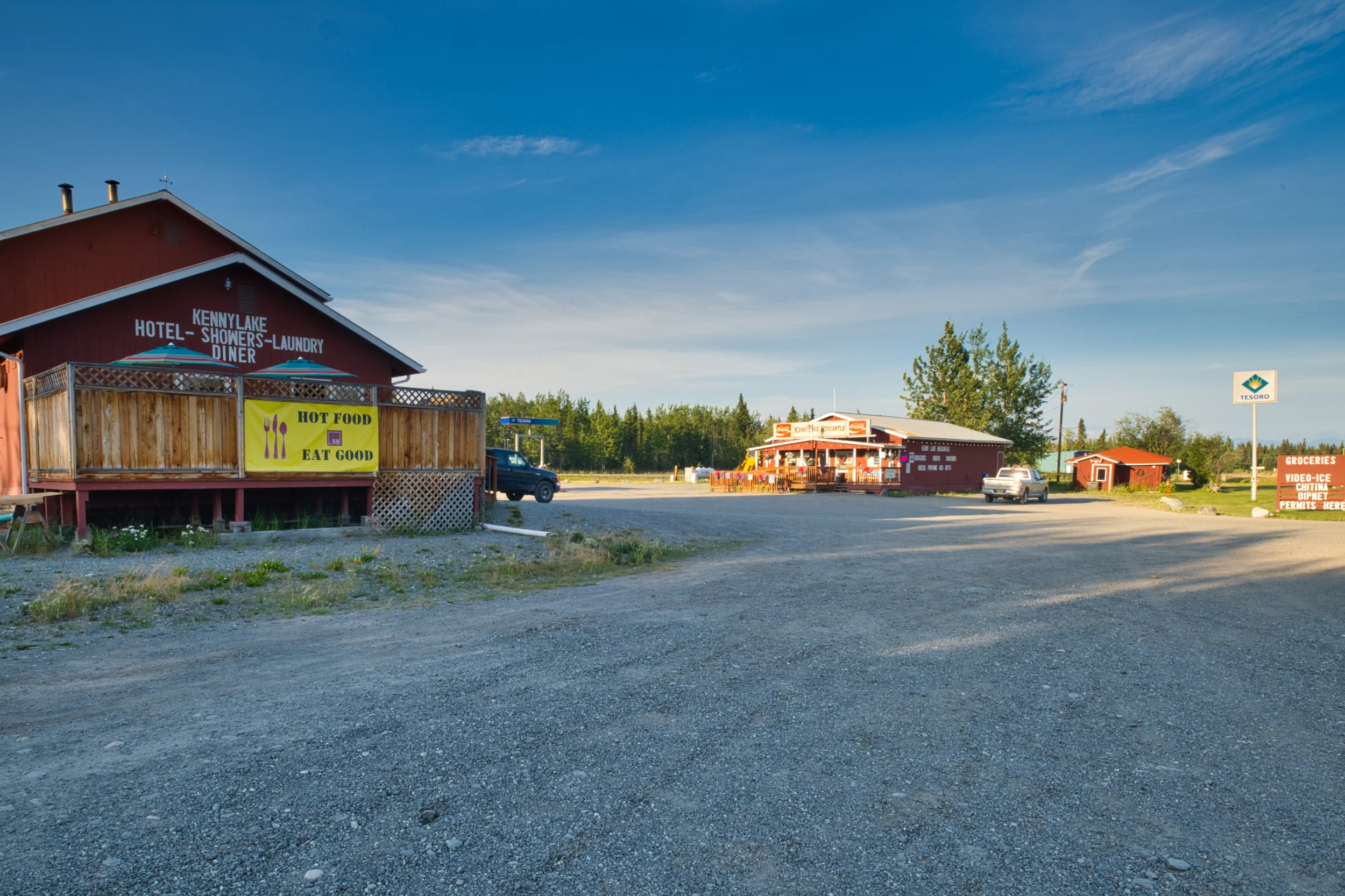 In Kenny Lake this is Sheetz, Walmart, Blockbuster, Hampton Inn, KOA, Cracker Barrel, Starbucks and more.