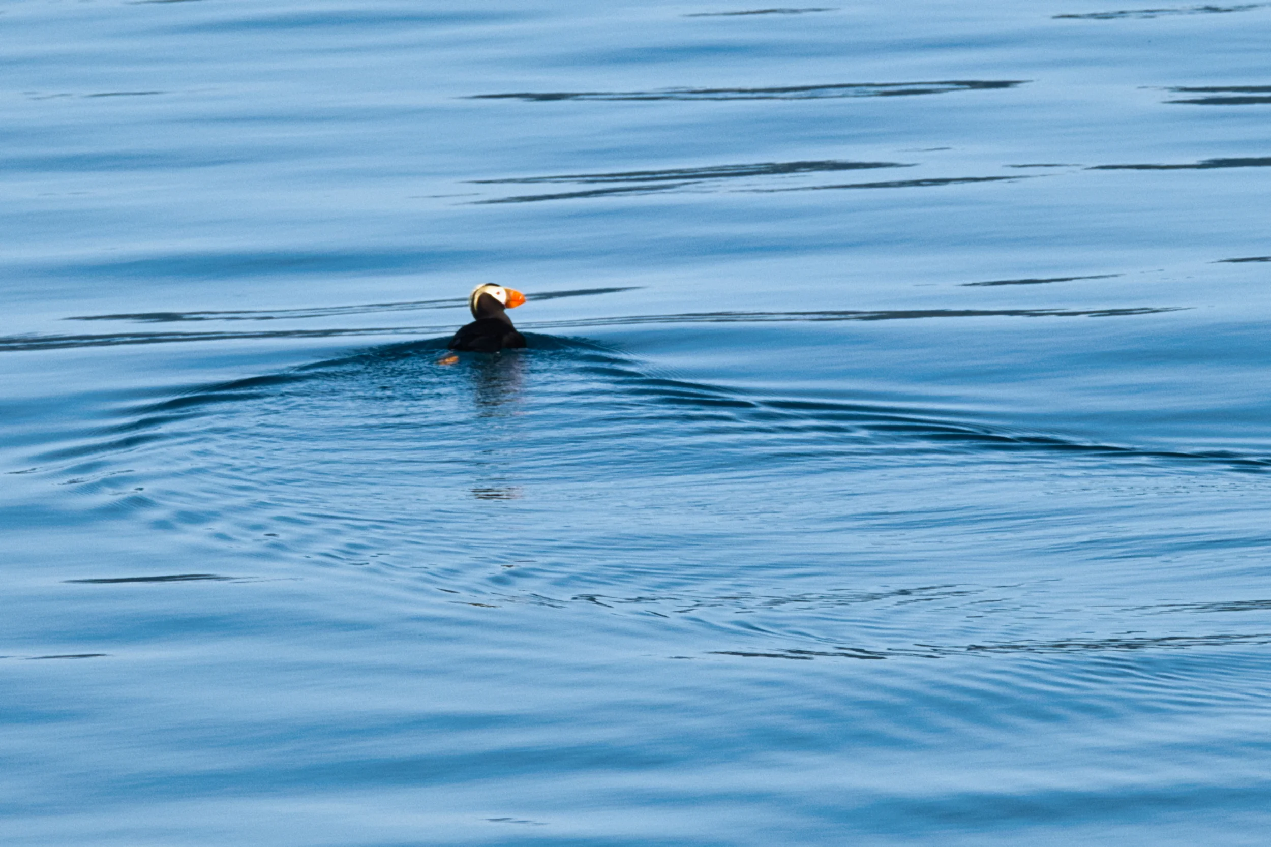 New bird number 24 for the trip, a Tufted Puffin serenely sailing in Resurrection Bay.