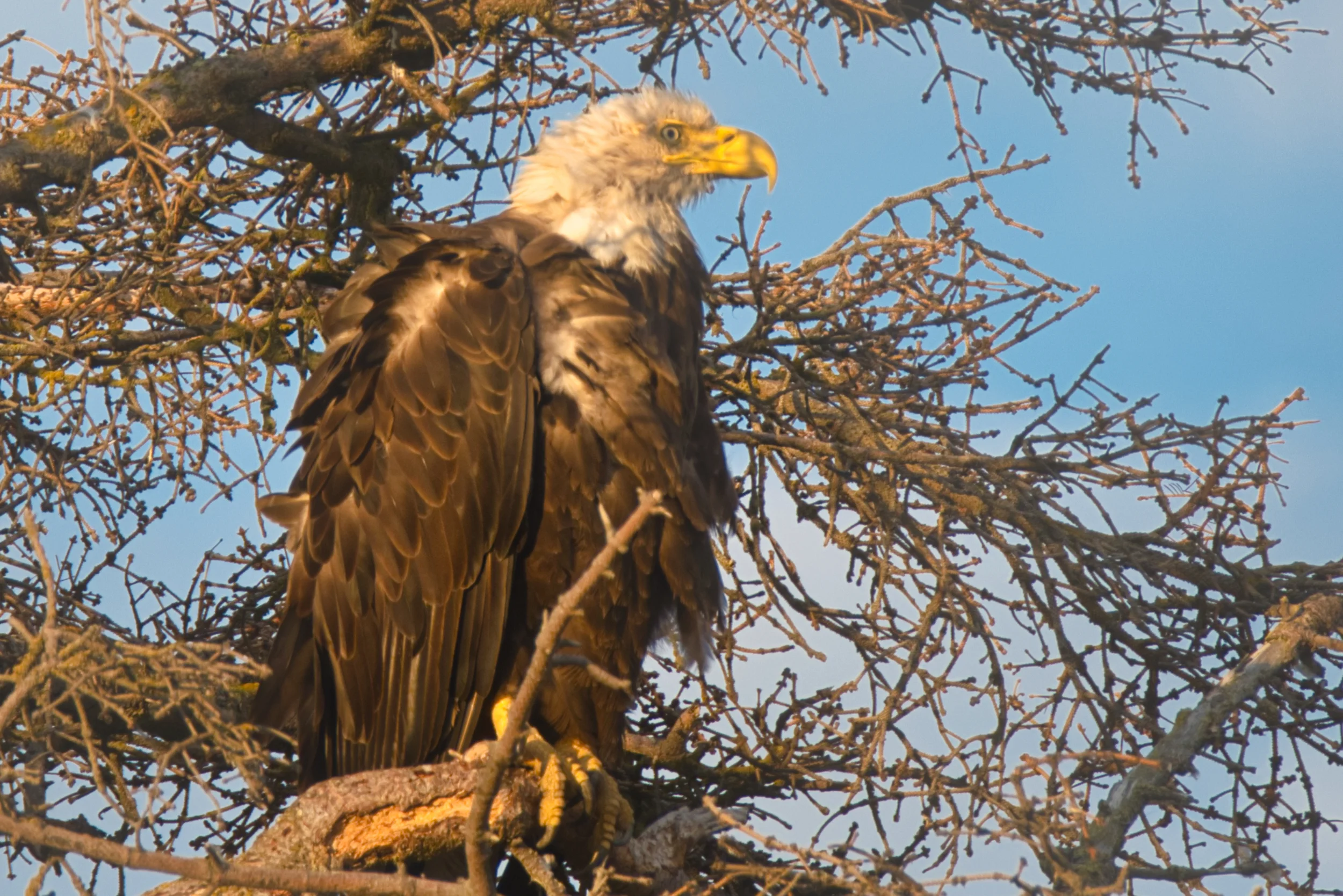 So, that was the morning. Nothing exciting extraordinary except the eagle that landed near our campsite. He was really large. Our drive north was beautiful and we could see across the bay for the first time to the snow capped, glacier filled volcanos that make up a lot of Lake Clark National Park.