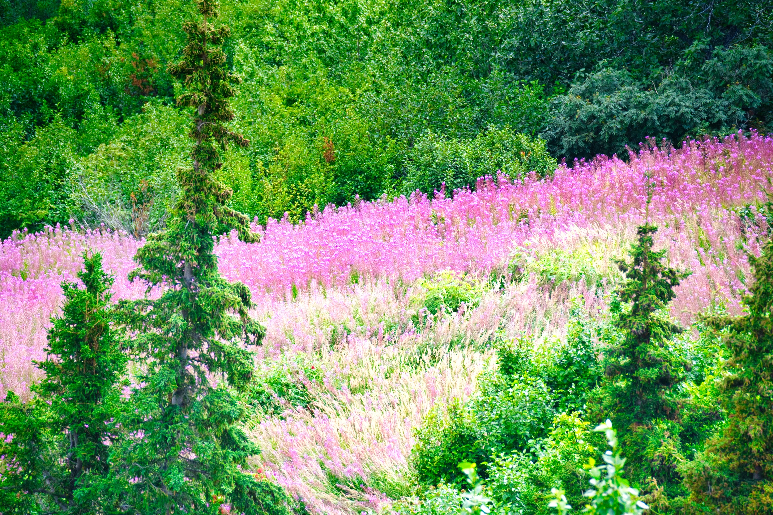 We awoke later than any day on the trip and maybe in recent memory! Guess we were tired. And the loon was calling. First, we drove the rutted road to the east to overlooks and a close up of Skilak Lake where we heard the raucous cries of gulls and cormorants at a rookery just off shore. The centerpiece of the day was a hike to the top of a mountain on the Hideout Trail. It was “supposed” to be only 3/4 mile and take 2 hours. That ought to be a clue. My step counter said it was a 2.4 mile roundtrip. And it was open to the sun due to a fire in 2000. We chose the wrong clothes and both of us were melting. I forgot my water so we only had Cindy’s. Almost at the top we met Will, head of fire prevention for the park. Nice guy who has had a tough 6 weeks with the fires here on the Kenai Peninsula. He refilled our water bottle so we made it to a wonderful view at the top of the trail of the large Skilak Lake, the Kenai River and mountains all framed by the profuse fireweed. Glorious. Dinner at the trailer for two tired people.