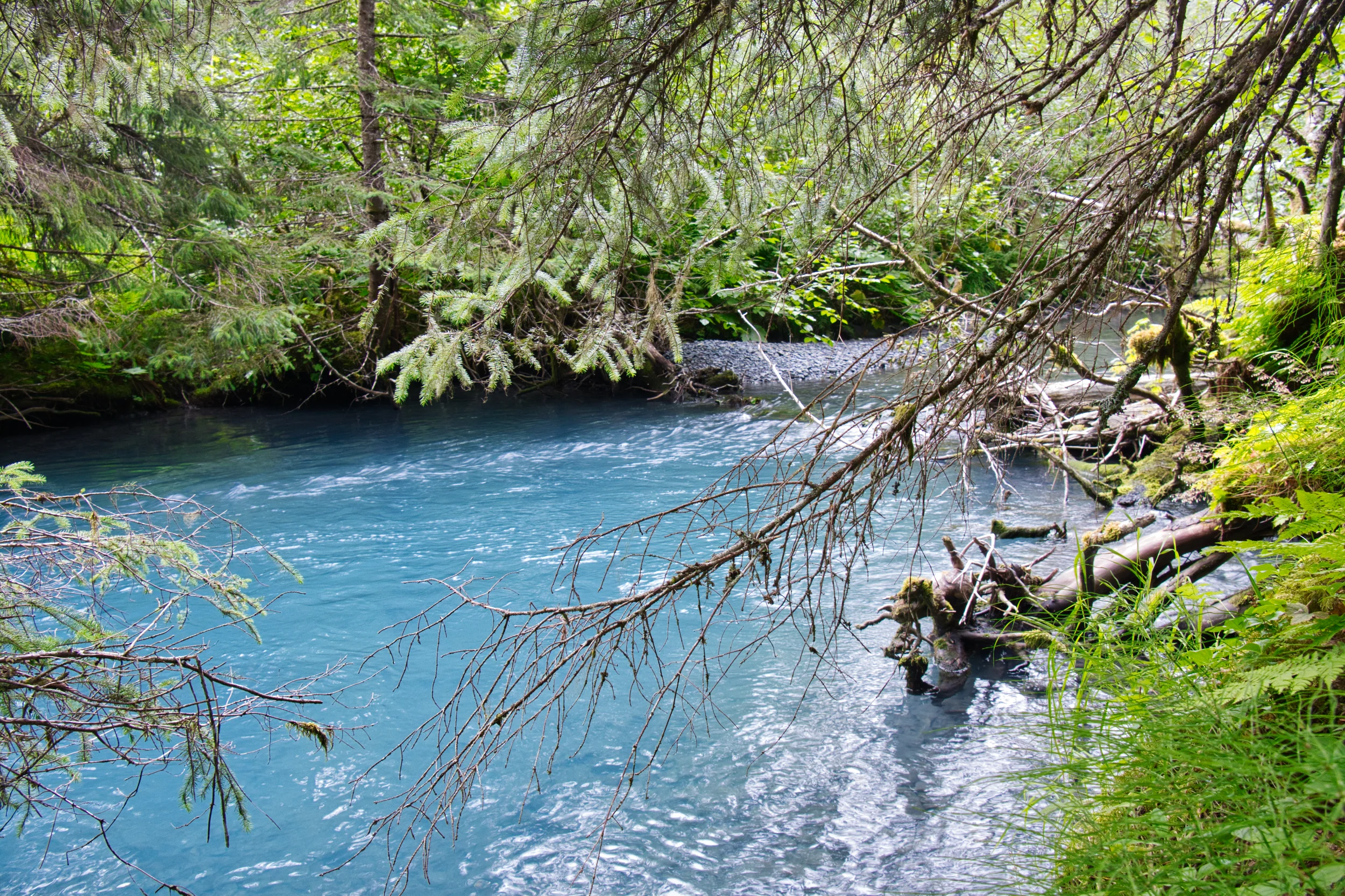They day began with a nice walk on the Blue Ice Trail that follows streams along the Placer River. Mountains tower over the other side of the water and tall pines and cottonwoods dominate the shorter aspen and willows. Two fish swam upstream as we were crossing a bridge, precursors of the coming spawn in this area. On then to Anchorage with a second stop at Potter’s Marsh, not as successful as stop number one.