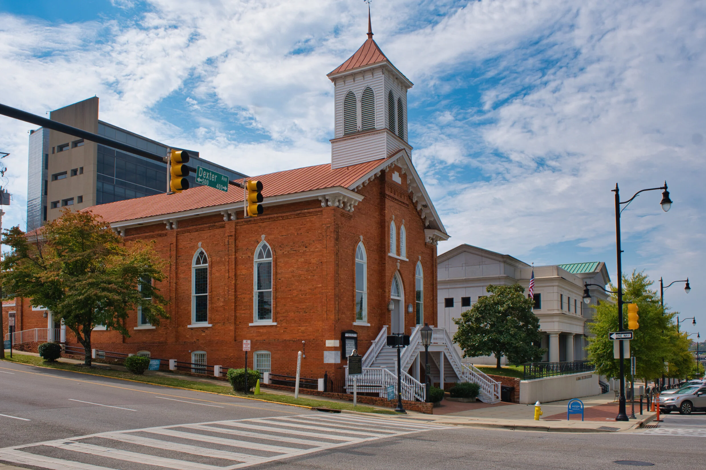 This is the Dexter Avenue Baptist Church in Montgomery where M.L.King Jr. was the pastor from 1954 to 1960. It was in 1955 in Montgomery that Rosa Parks refused to move her seat on a bus that set the stage for the lengthy bus boycott here that advanced the civil rights movement. King was at the forefront of that effort and gained national prominence here. This is a part of the Selma to Montgomery NHT that traces the walk for voter’s rights. The church is now named the Dexter Avenue MLK Memorial Baptist Church.