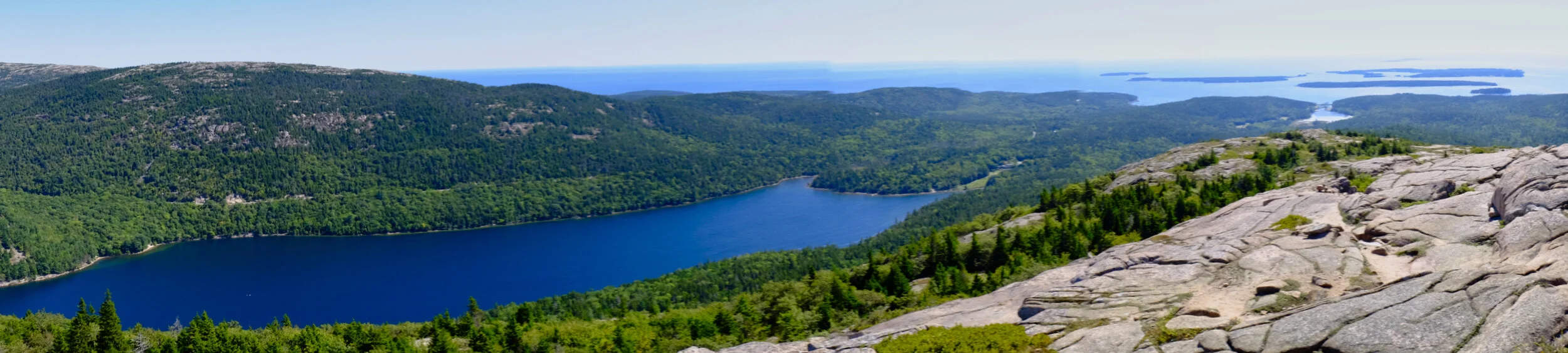 This is a panorama from near the top of Penobscot Mountain in Acadia National Park. My favorite hike! We have done this one four times and once pushed on to Sargent Mountain. That is the Jordan Pond below. I am excited because we are in the process of planning a trip there for 2021. No place I like better. Covid needs to cooperate next year.