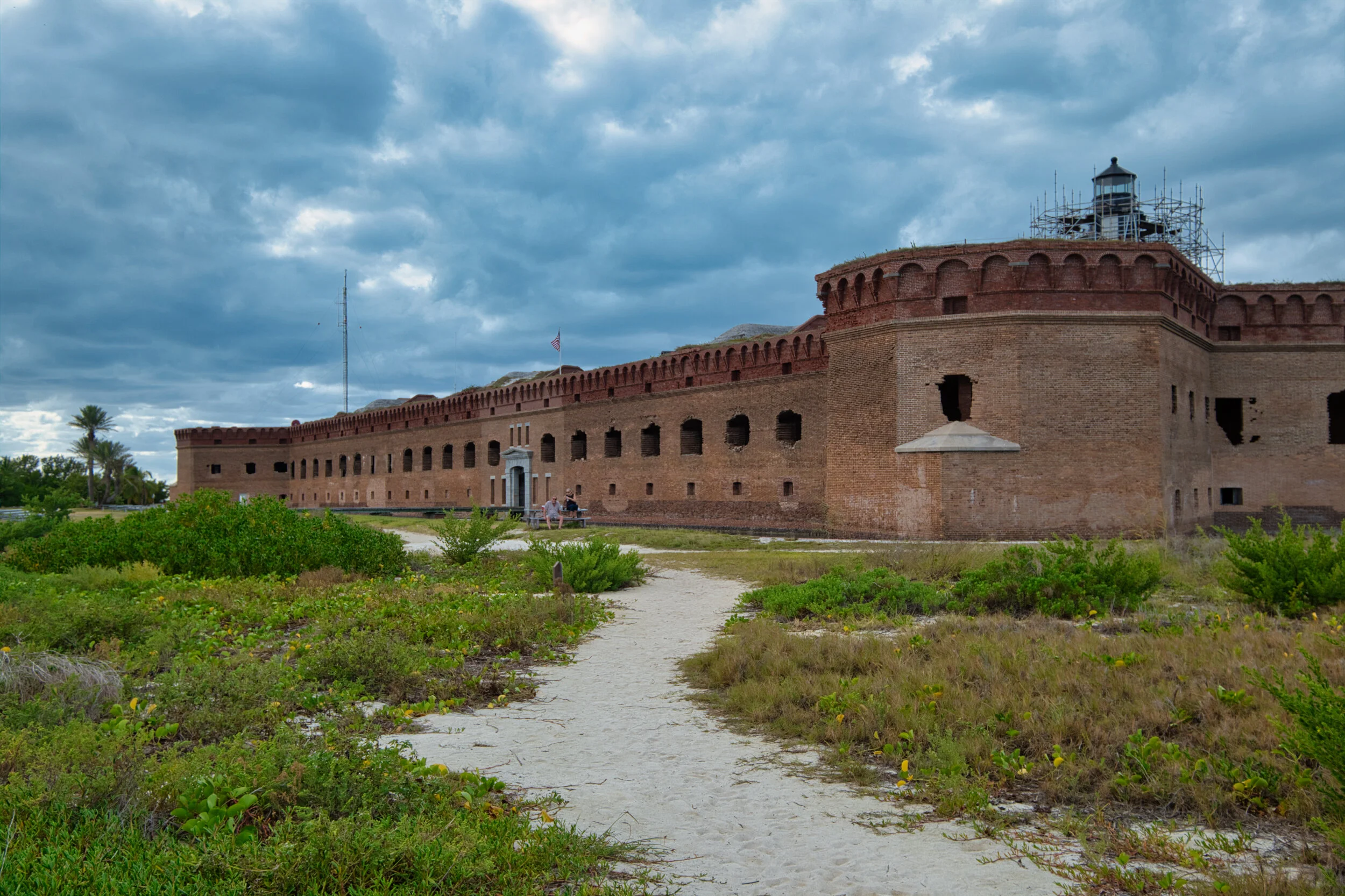 Once you land at the Dry Tortuga’s you cross the tiny strip of sand where the plane is moored and approach the entrance to Fort Jefferson. The fort covers over 90% of the island and is constructed of 18 million bricks. There is a small adjacent isle that is connected at low tide. There is a third one that extends a bit further toward the mainland that is a roosting place for Magnificent Frigatebirds. This is the most northerly locale for these amazing birds.