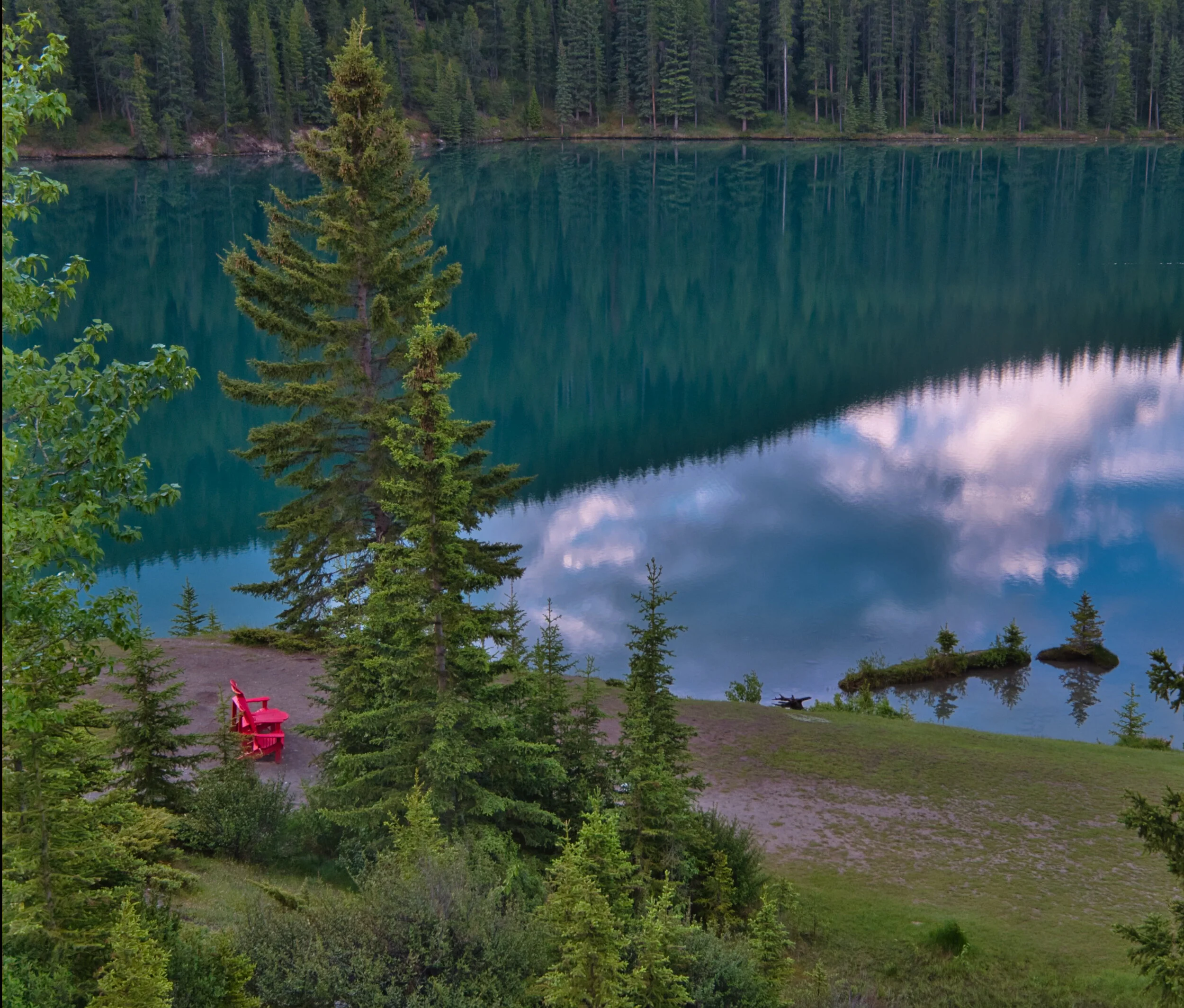 Red Chair for Two /April 20, 2020 by Dave Hileman One of my favorite images from Lake Louise, Banff, Alberta, Canada
