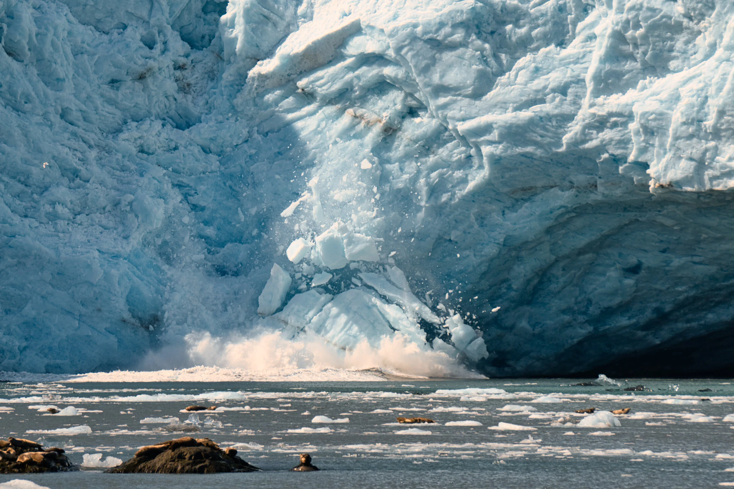 This ice fall is from Kenai Fjords National Park. There were several seals sunning on the ice floes and they did not scatter when the ice fell.