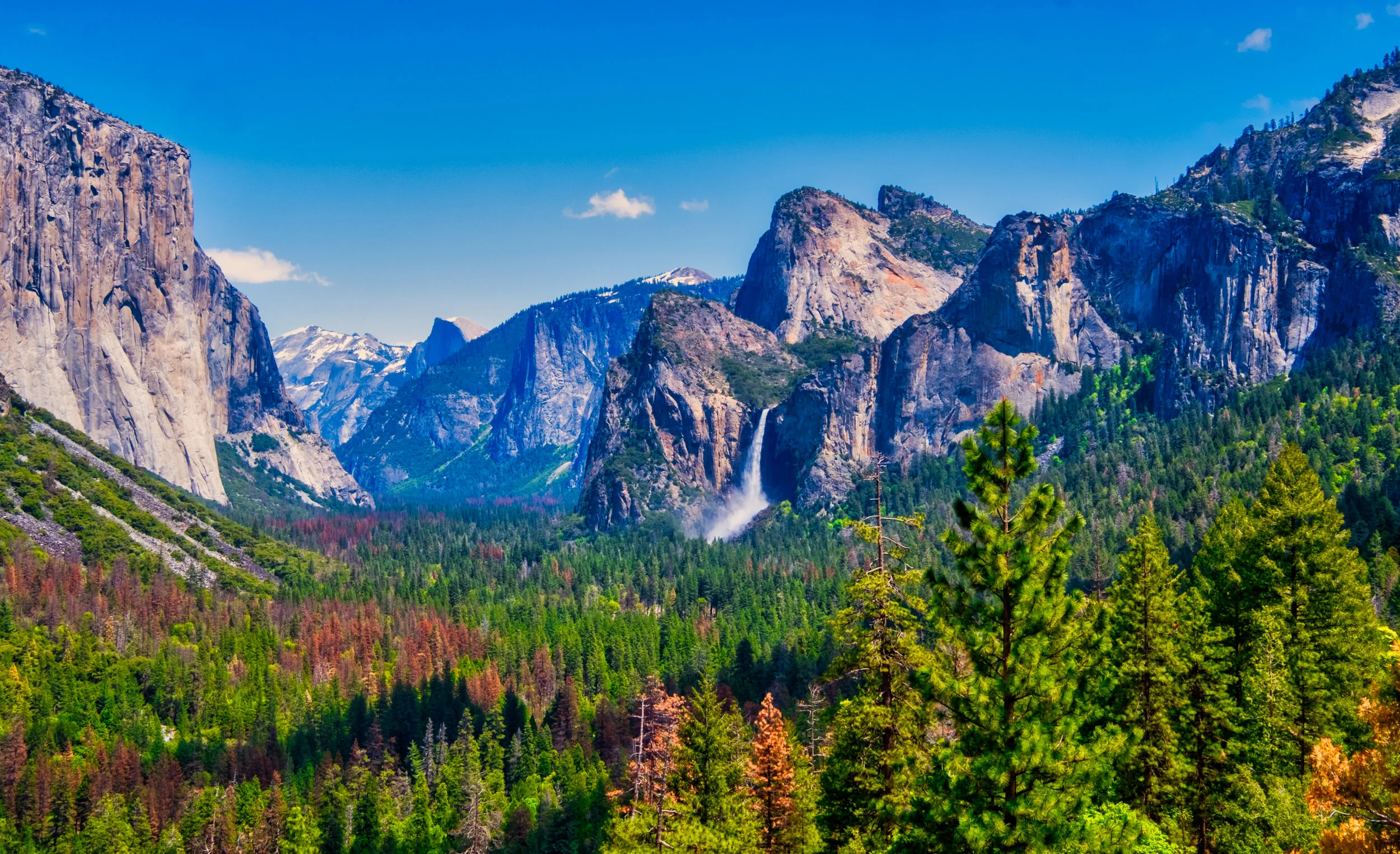 Today is a sweeping view of the Yosemite Valley with Bridal Veil Falls in the center. Again a re-edited version.