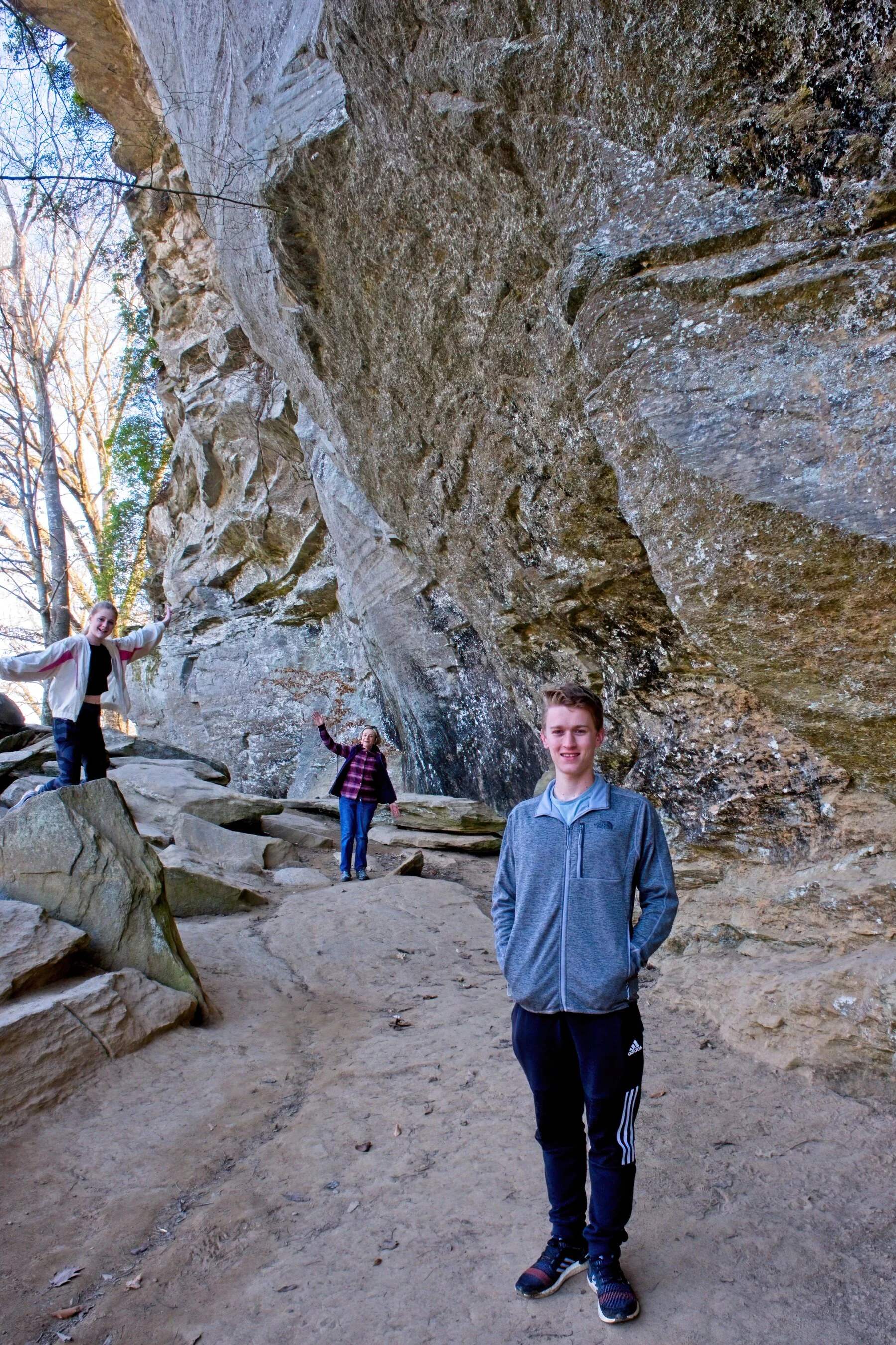 This is the rock that is the namesake of Raven Rock State Park about 50 miles south of us in North Carolina. We did a quick afternoon hike there last week with two of our grandkids. Nice place. When you descend the 140 plus stairs to the level of the river (Cape Fear River) you can see the rock formation and it runs about 150 yards along the river, or at least that is the accessible portion. The rock extends into the water at each end of that stretch. Interesting place and worth the trip. The overhang was pretty impressive.
