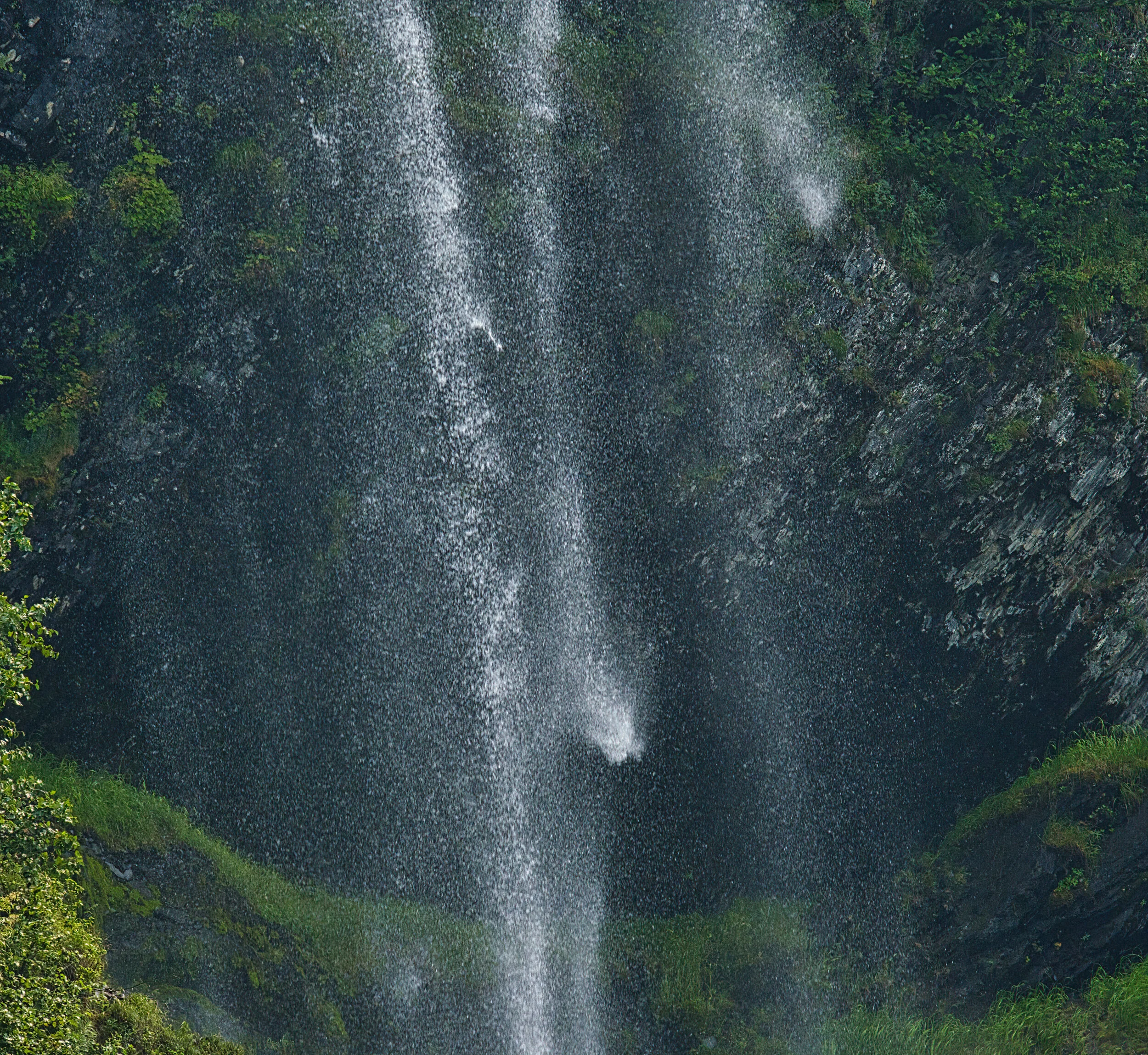 Another different waterfall, this one in Alaska was at least a hundred feet high for the final drop and the water spread out in a very delicate display.