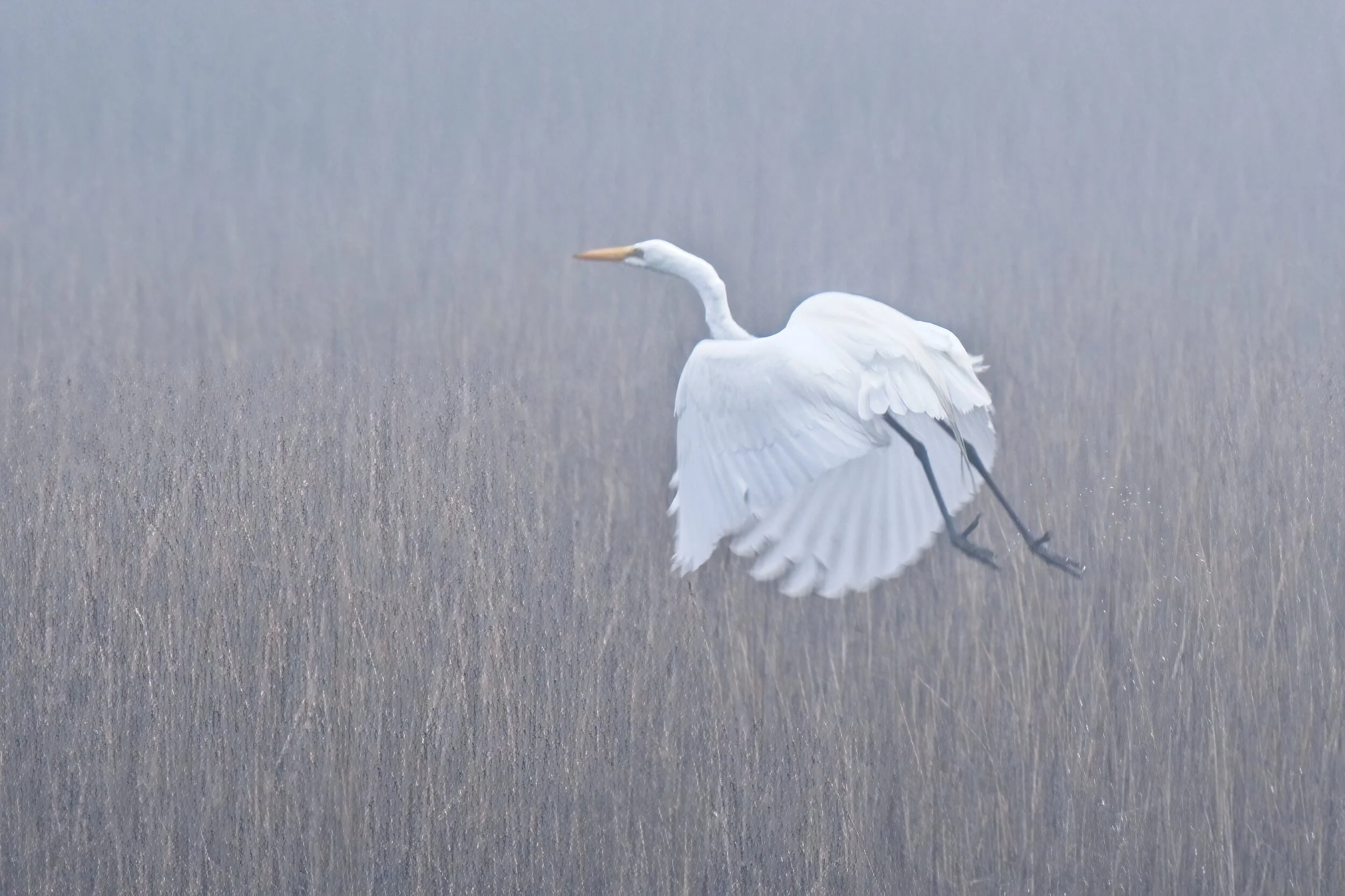 I startled this Great Egret into flight while walking the shore path in Skidaway State Park in Georgia. He flew across the marsh in the heavy fog so everything seems soft and a bit etherial. Liked this look.