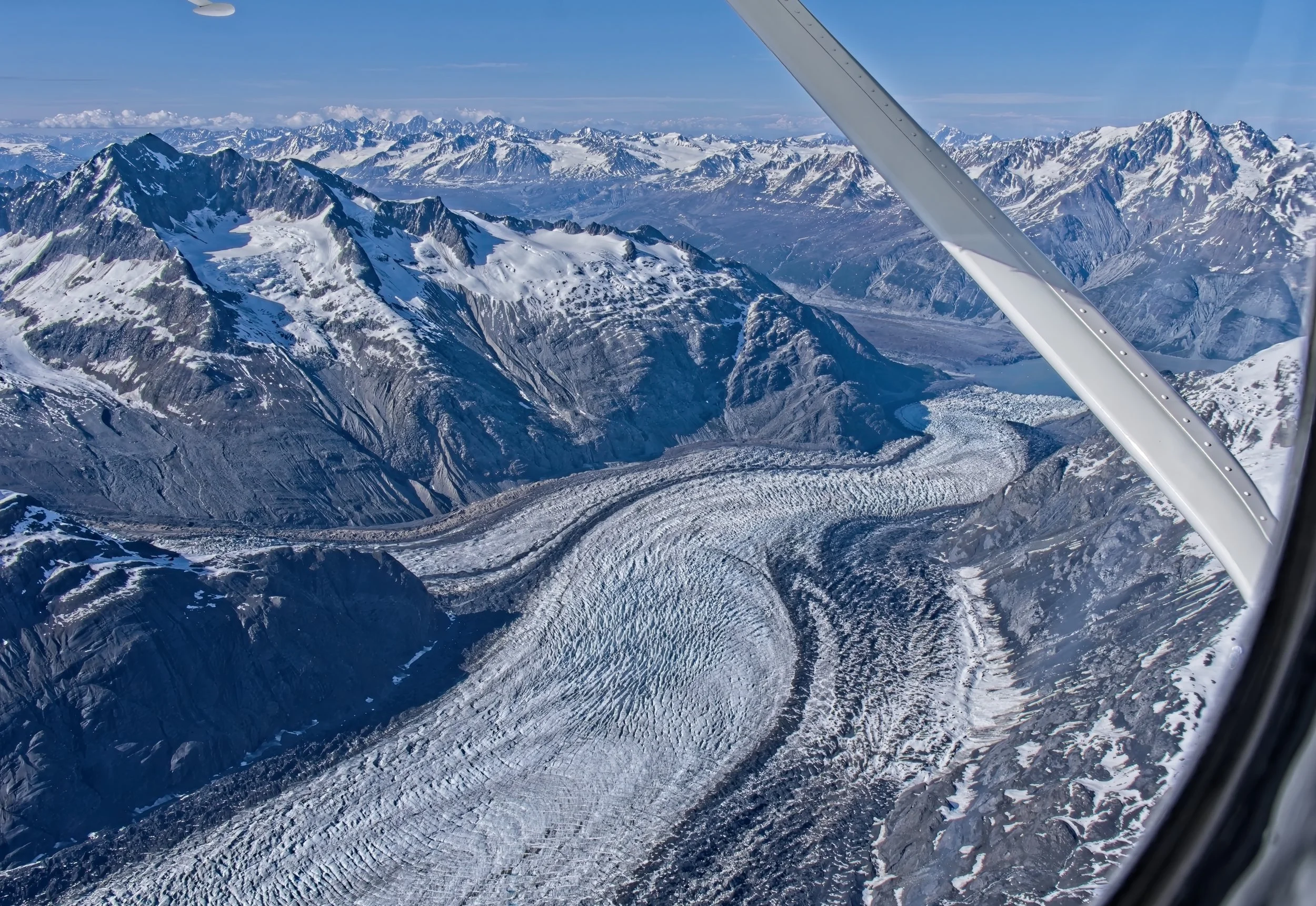 This river of slow moving ice was photographed from a small plane over the Glacier Bay National Park in Alaska. I was there in 2019 and the small plane was a most fabulous way to view this vast icy land and seascape. Moments never forgotten.