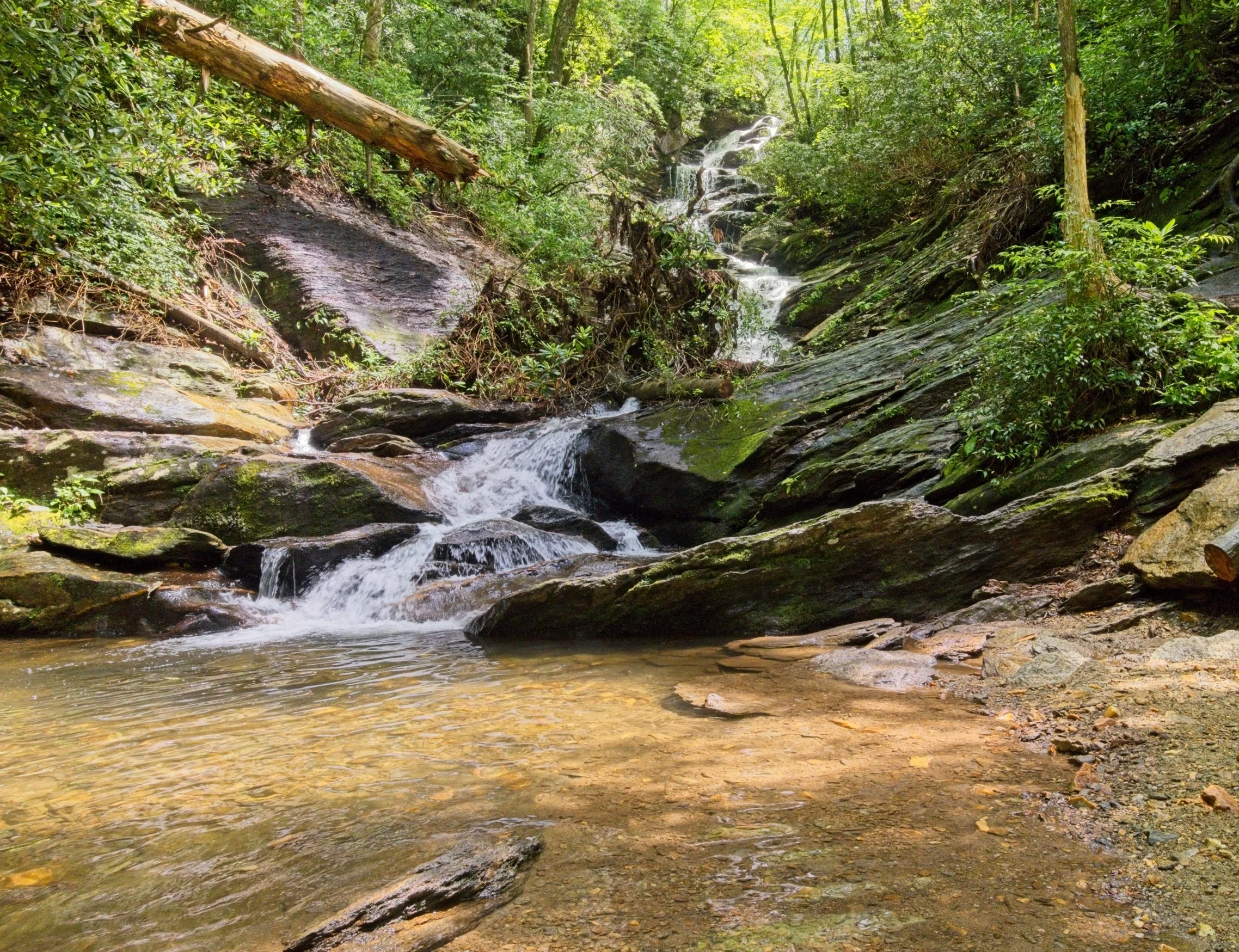 Jill and I took a short trip to Burnsville, NC, about 40 miles north of Asheville in the Blue Ridge. Lots of devestation from the hurricane last year still in evidence and much of the BR Parkway, Mt. Mitchell State Park and other venues still closed. However we did enjoy the town, the old inn and two hikes. One of them was to a falls and the other 2 miles along a rushing stream. Thus this week’s theme.