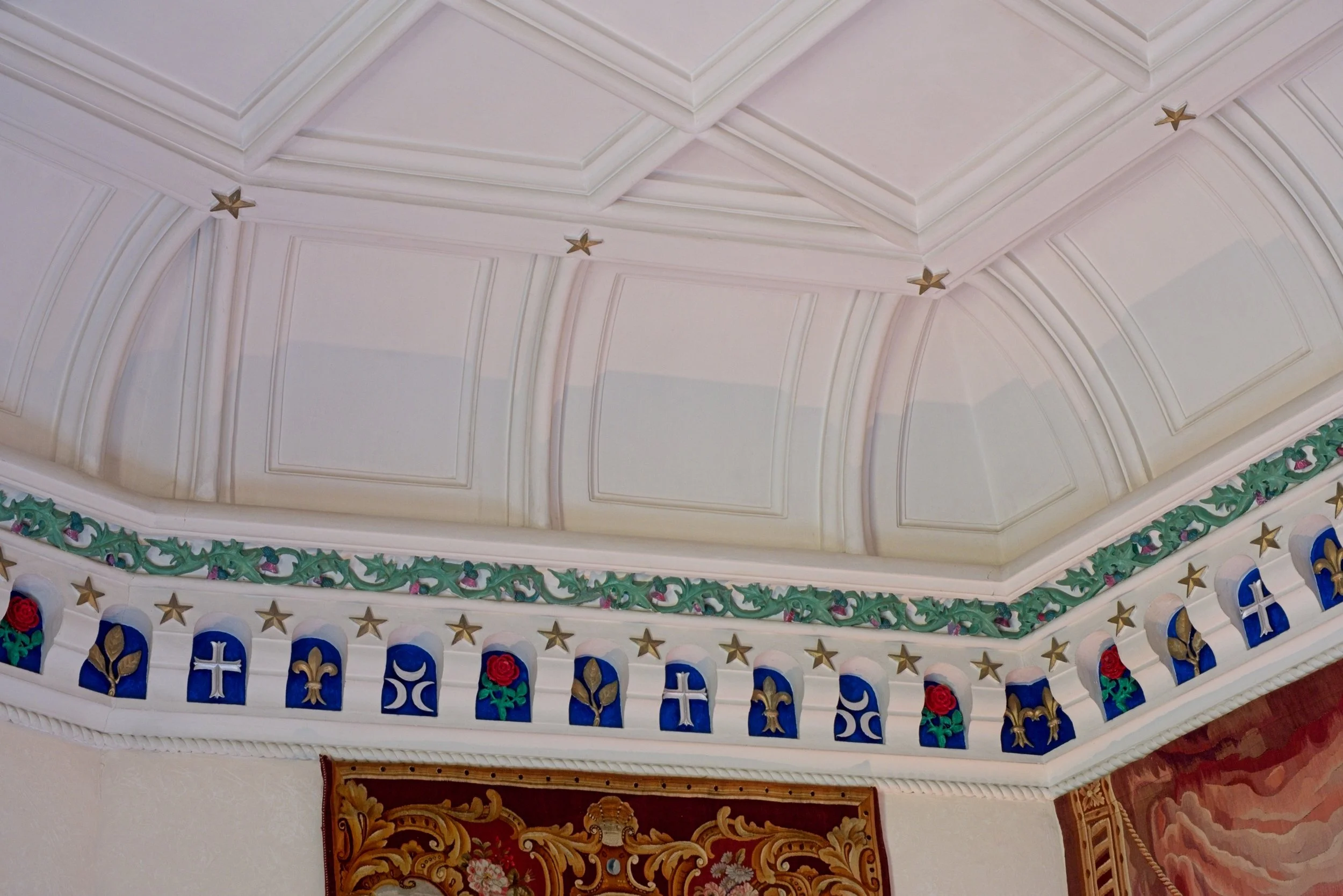 Details in the Castle Dunrobin including intricate ceilings, carvings and exotic woods, finished stairs in the towers, relief work, hidden courtyards and much more.