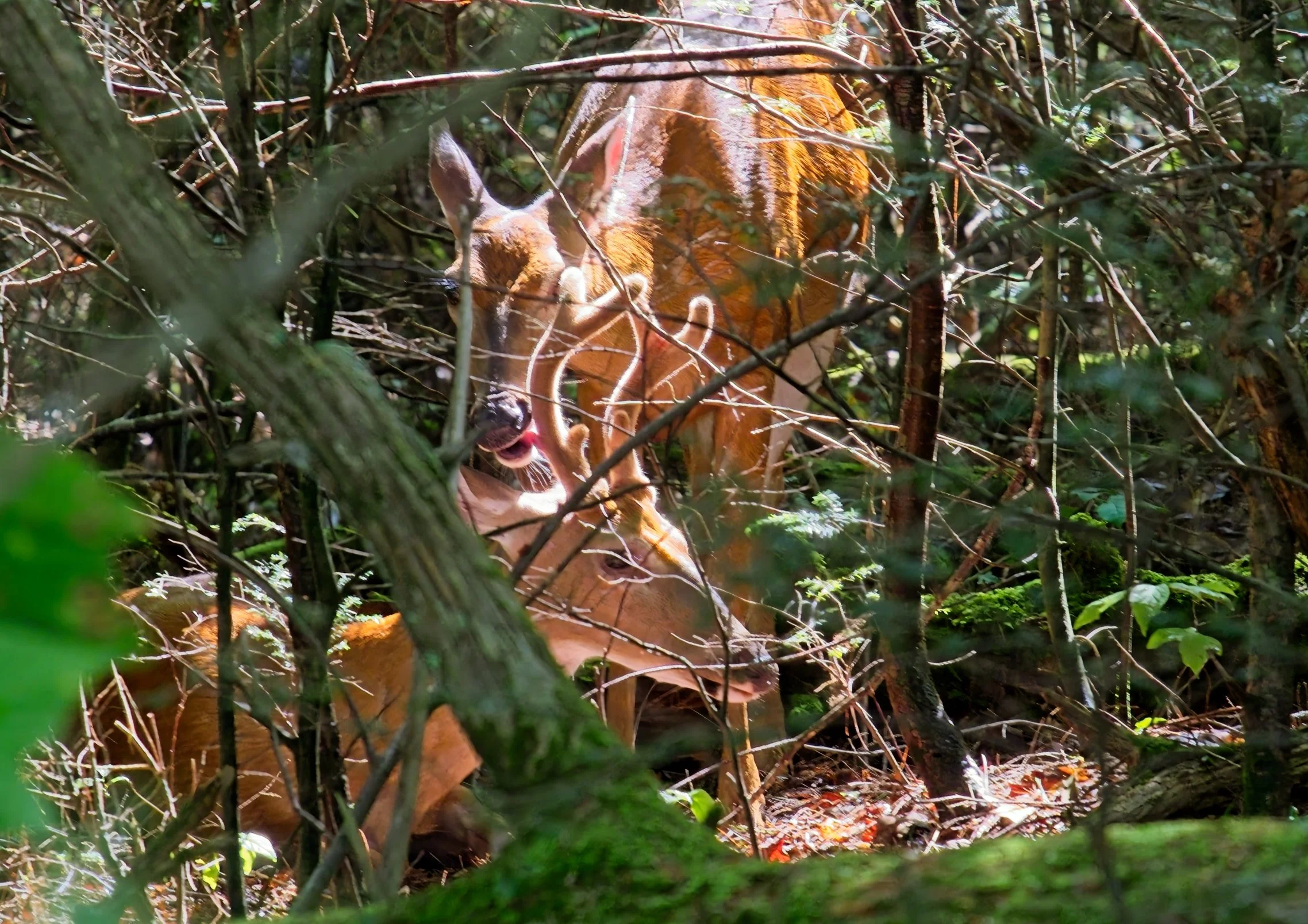 This doe was stripping the velvet off the male deers antlers. I spotted them well off the trail in the Great Smoky Mountains NP.
