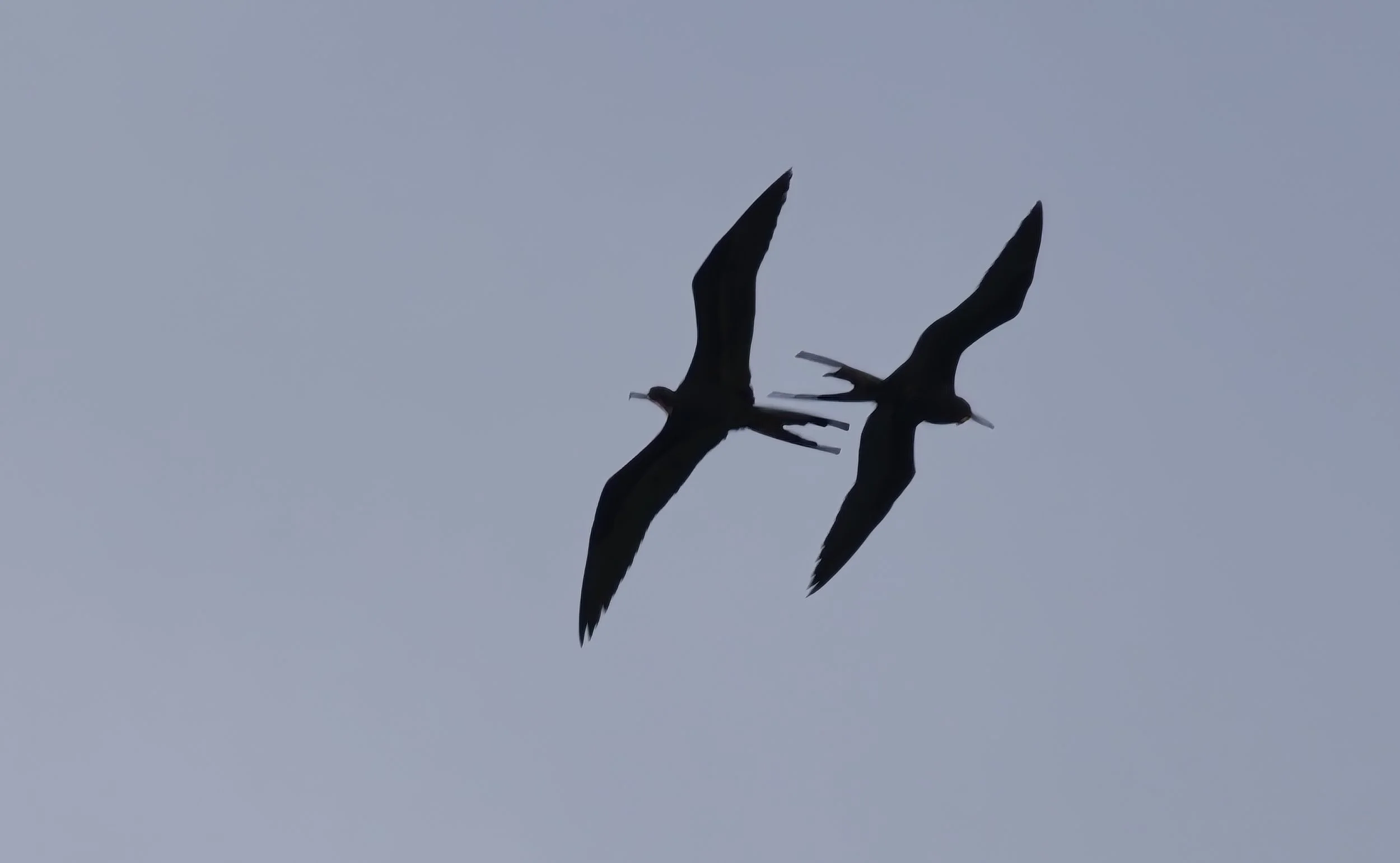 After the gulls are three Magnificent Frigatebirds. And then the seaplane.