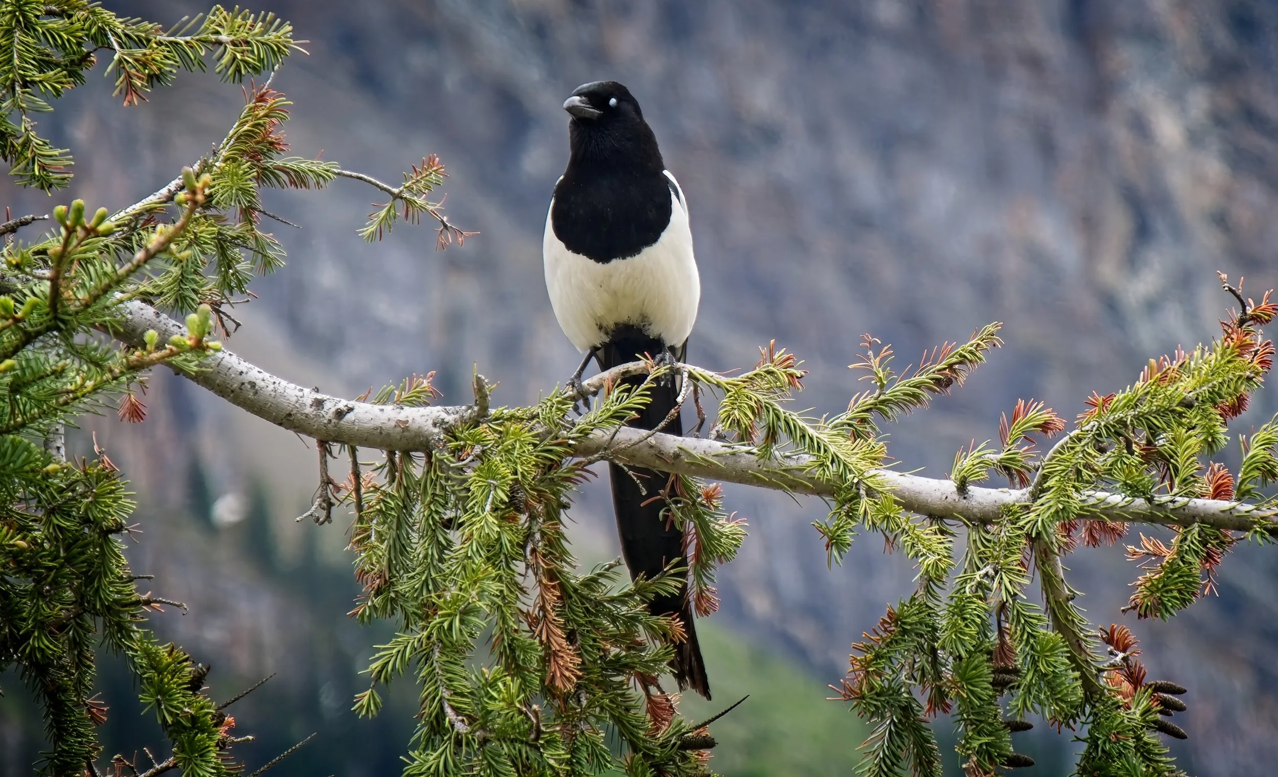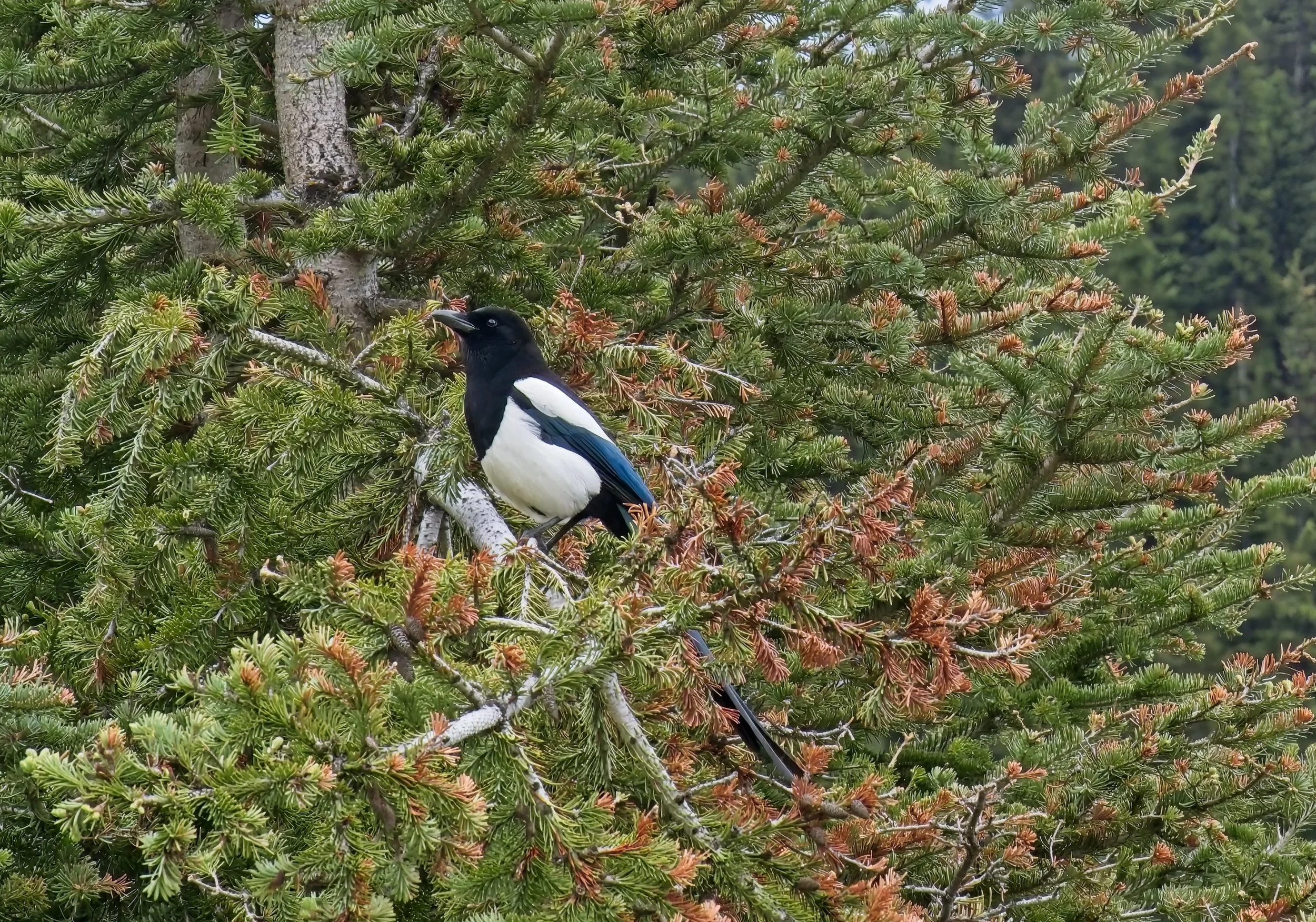 This bird of striking color and song “is thought to rank among the world's most intelligent creatures, and is one of the few nonmammalian species able to recognize itself in a mirror test. Magpies have shown the ability to make and use tools, imitate human speech, grieve, play games, and work in teams.” That if from Wikipedia. This bird was photographed near Banff, Canada. Love to see these birds and hear their songs. Reminds me of my Western trips.
