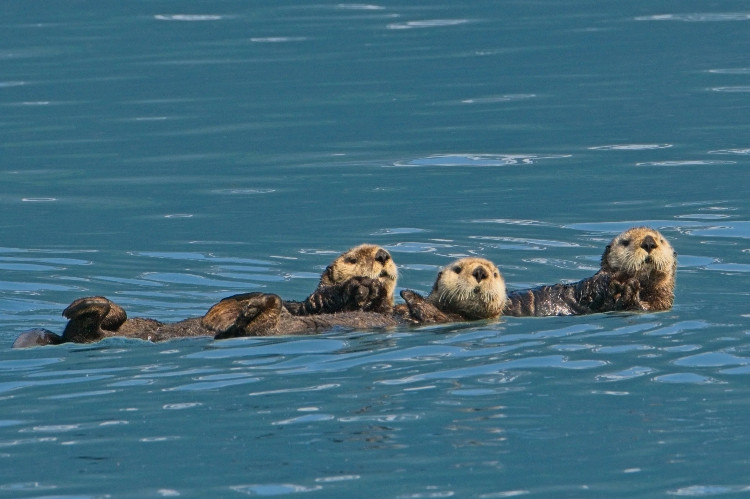 I photographed these three otters of the coast of Homer, Alaska in Kachemak Bay. They were floating along linked together. They are fun to watch.