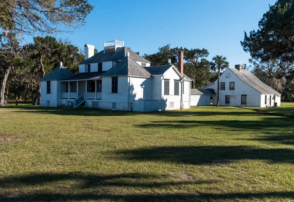 Just out of the city of Jacksonville is this very early plantation, founded in late seventeenth century and continued for generations. Kingsley Plantation house dates from 1814. The slave quarters were built of tabby and arranged in a very large semi-circle.
