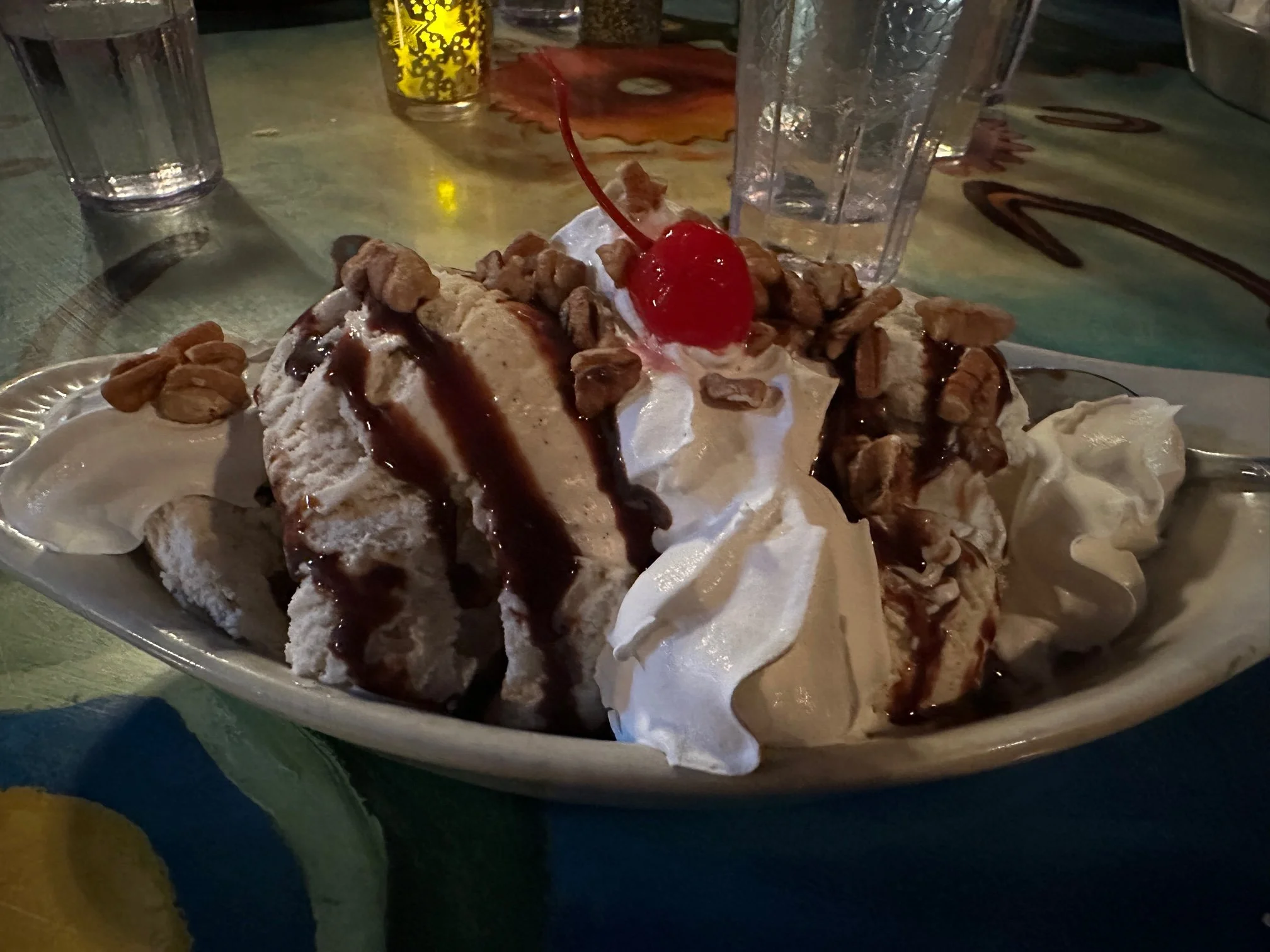 Here, is the Starlight Theater in the “ghost” town of Terlingua, Texas. It is named the Starlight because for years the handful of residents met here, cooked on grills and often ate together in the old theater that had no roof, hence, the name Starlight. Some years later as tourists discovered the town, a roof was added and it is now a very nice restaurant. We ate here along with Rusty and Janet and all agreed it was excellent. So the correct answer is Yes, you should eat here and enjoy the unique town that surrounds the theater.