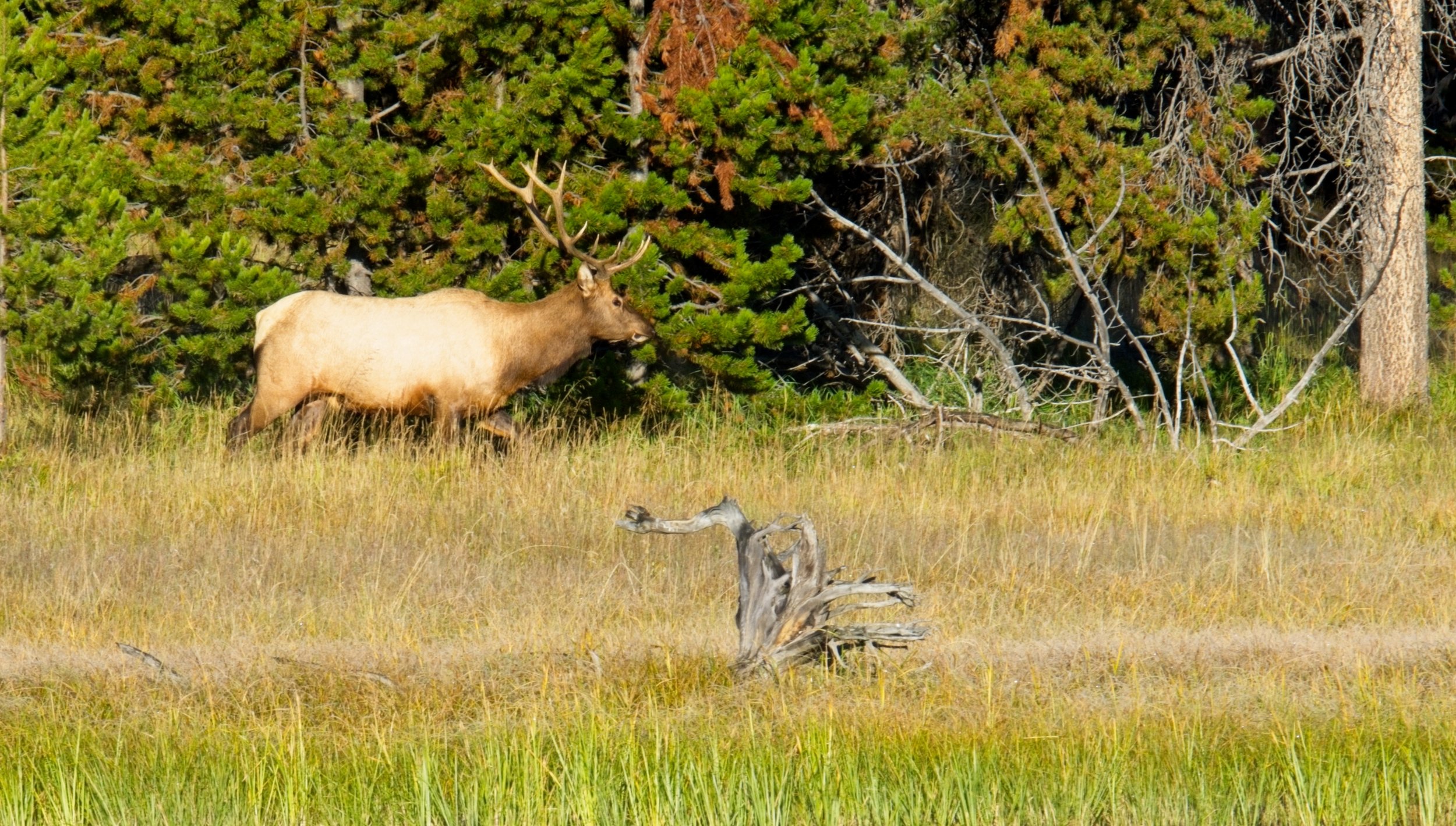 Elk are beautiful animals and their antlers can reach proportions that seem to defy balance. There are places, like some golf courses, south entrance to the GSMNP, and the nothern reaches of Yellowstone where they gather around buildings and roads and they are ok to see in that setting but when you find a lone animal in the woods while on a hike and listen to him bugling you are mesmerized by them. This bull elk was a treat to watch from a safe distance for several minutes on a trail in Yellowstone.