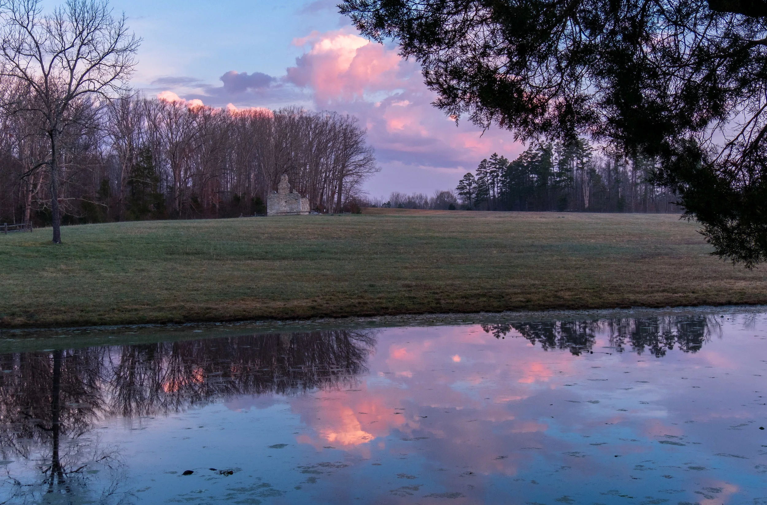 This is a photo taken just after dawn on Saturday at Berry Hill Plantation near South Boston, Virginia. Waypoint held their Director's retreat here. Beyond the pond is the remaining wall from a home for the enslaved people on this plantation. There are several on the property. It was a substantial structure and housed at least two families. But do not think it was a good place to live or work. Even if treated well by comparable standards the work was long, hard and with no rewards. And you were not free. No dignity, no future, no value beyond economic. How different if the Scripture was understood instead of used as a blunt instrument to justify the unjust.